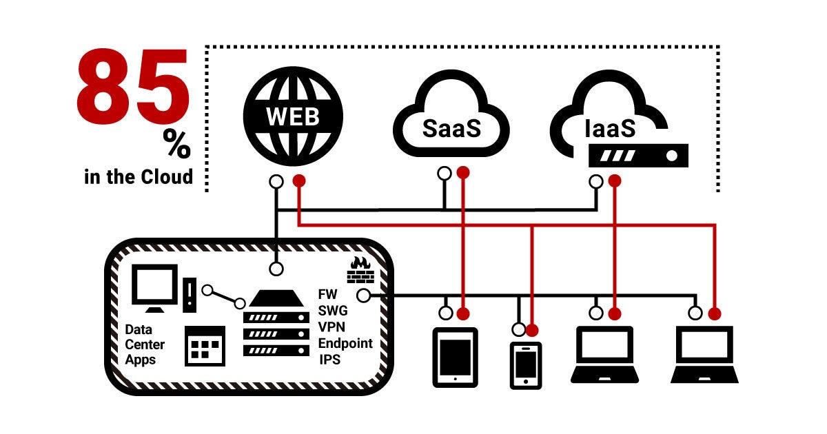 Netskopeは、急激なクラウドサービス利用に対応すべく、データの通信経路に着目したセキュリティソリューションです。現在、世界のデータの85%以上はクラウドに保存されていると言われています。また、従来の境界型のITインフラでは、社内のリソースを監視さすればよかったものの、クラウドやモバイルデバイスの登場によって、データの流通経路を多様化し複雑化しています。