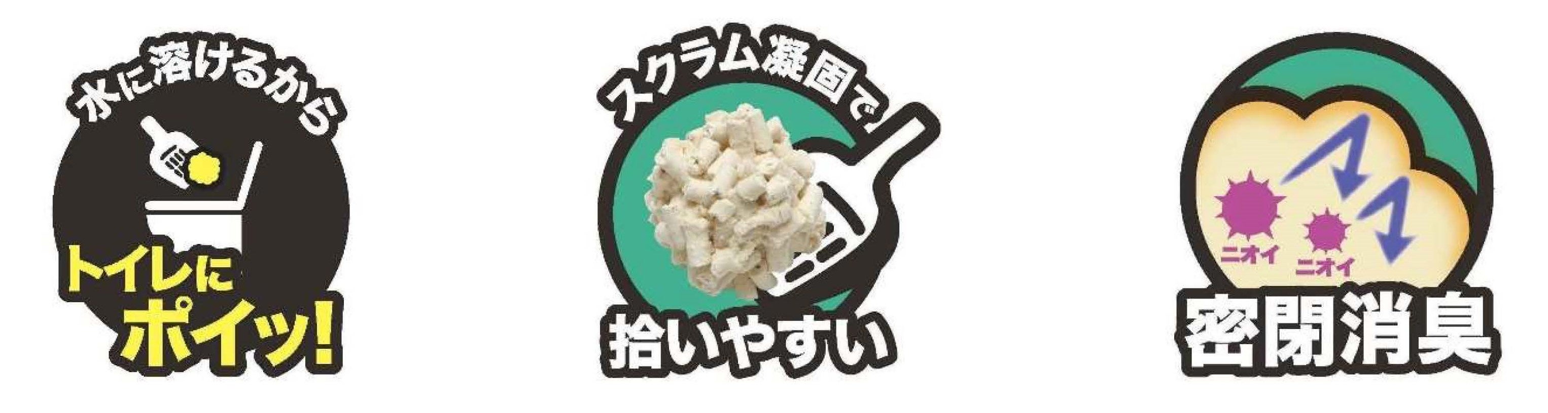 『ネオ砂クイック』は、スクラム凝固による拾いやすさと、密閉消臭の高い消臭力、そしてネコ砂の後処理が簡単であることが特長です。