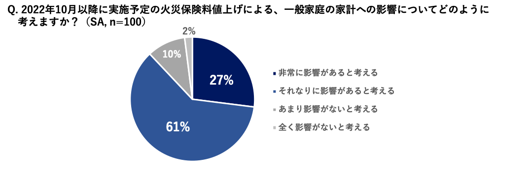 ・さらに、2022年10月以降の「火災保険料の値上げ」が、家計へ影響を及ぼすと回答したFPは88%。