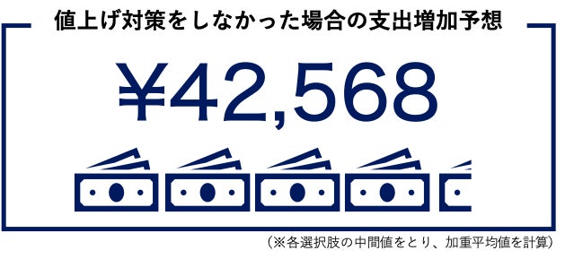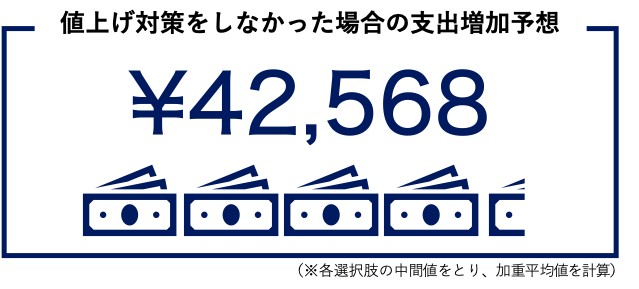 ④値上げ対策をしなかった場合、平均で年間42,568円支出増加と予想