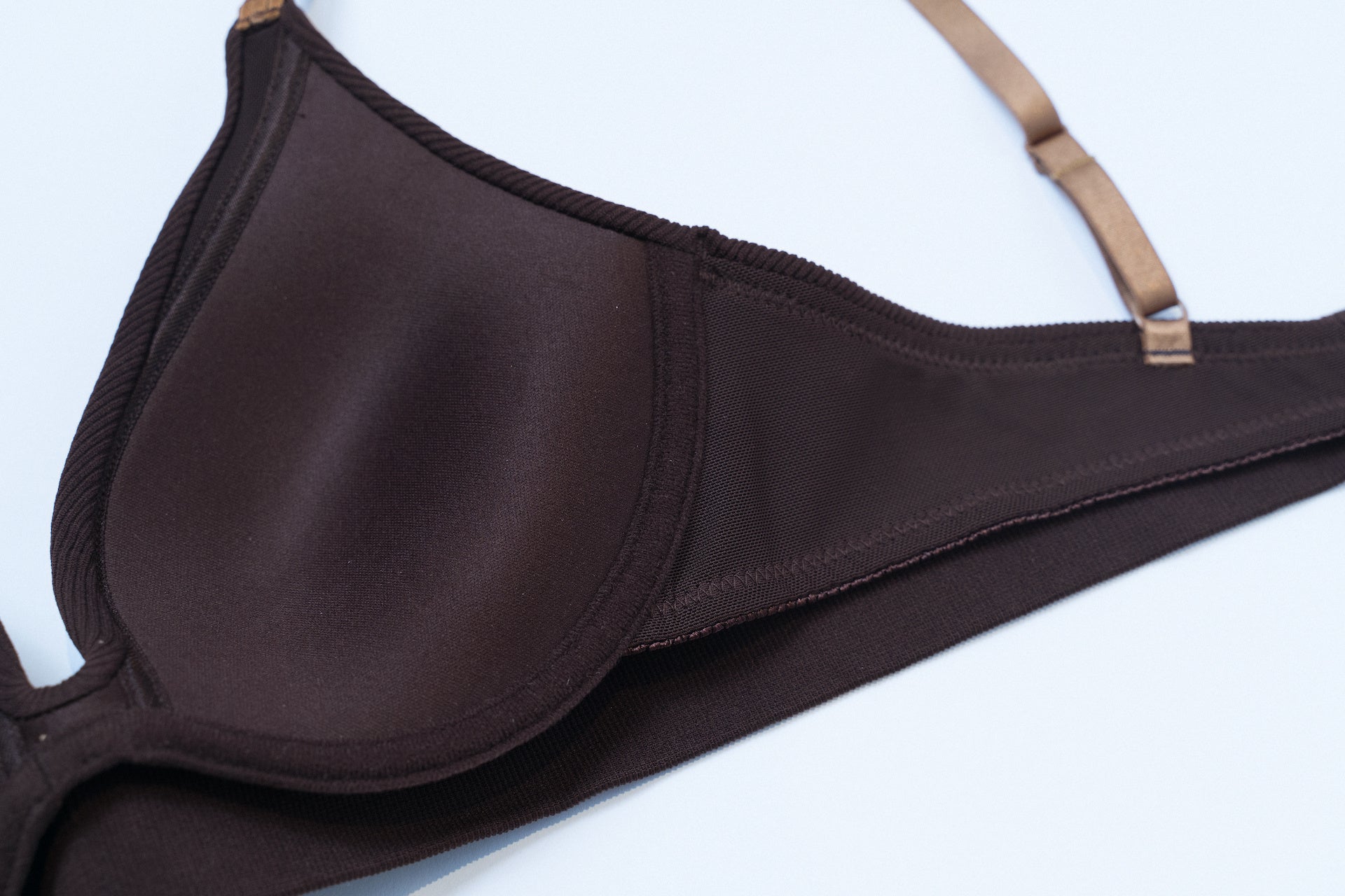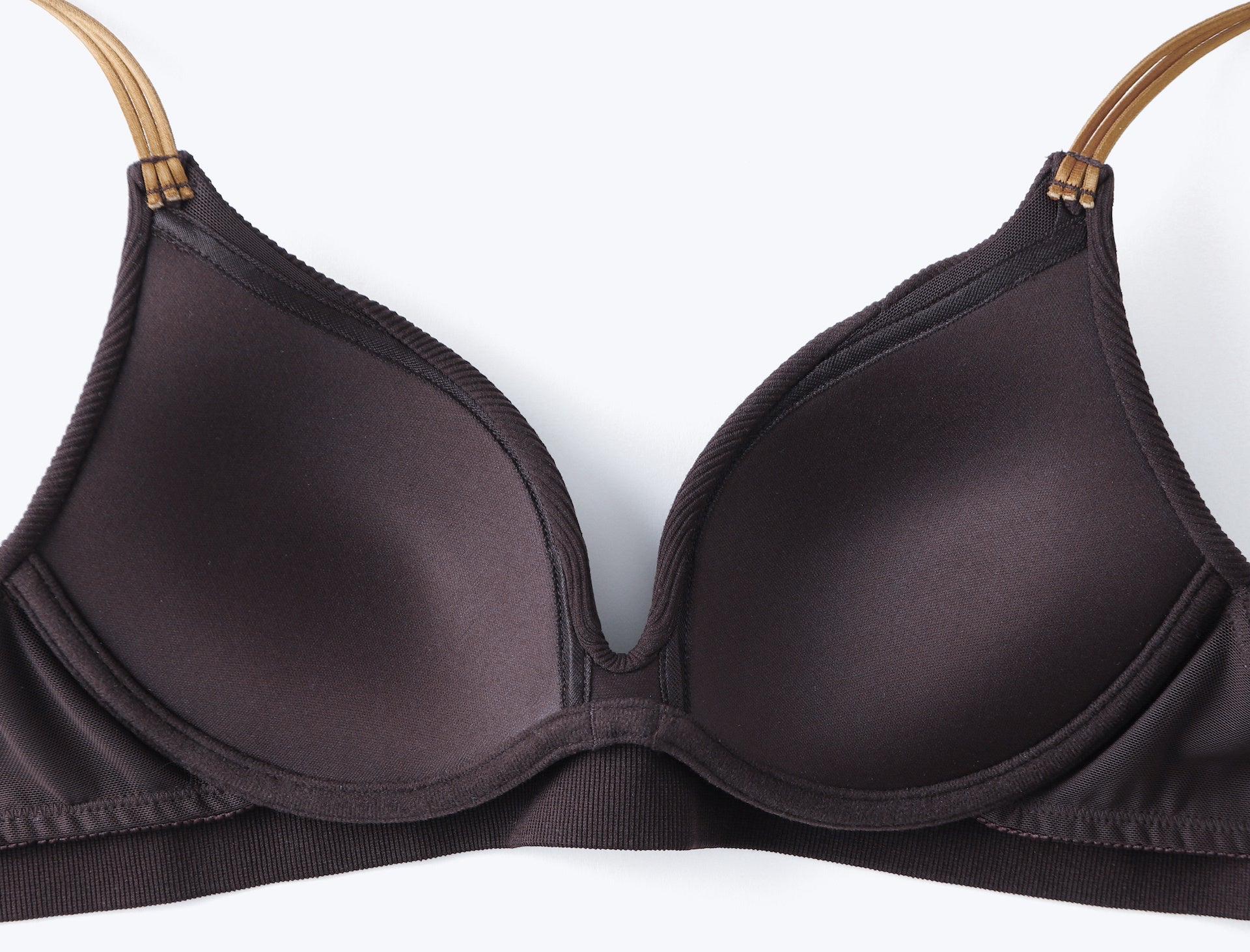 カップ上辺はバスト上部に馴染みやすく、バストをより美しく見せます。