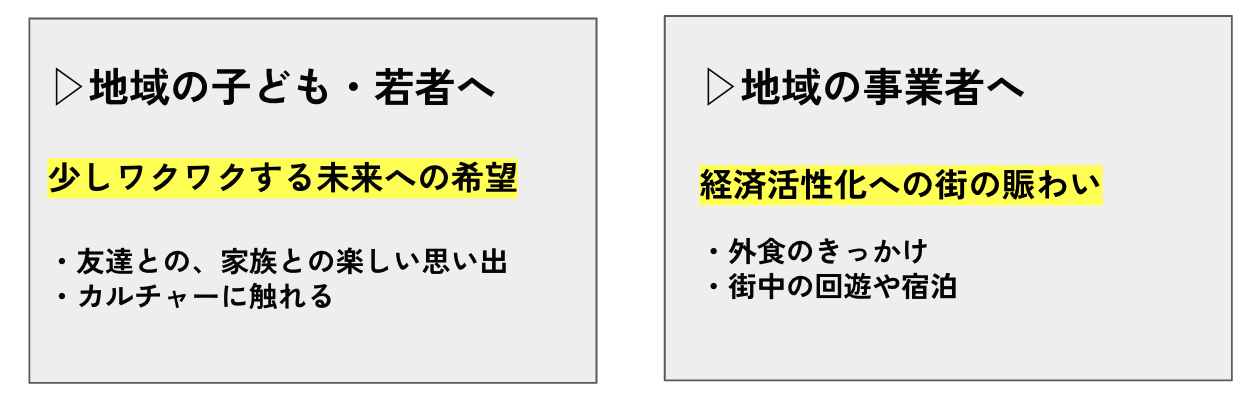 ■武雄千年夜市実行委員では、2つの目的を設定しました。