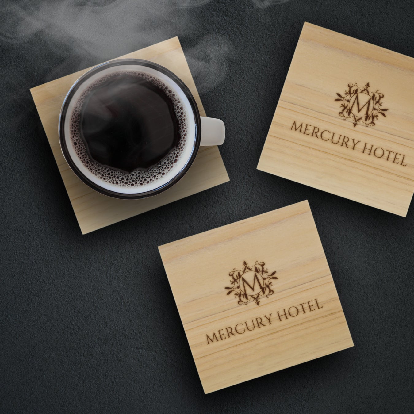 ホテル内のインテリアに調和するデザインが求められるアイテムです。木製のコースターは、温かみのあるナチュラルな風合いが特徴で、テーブルやバーの空間を上質に彩ります。お客様にとって快適な滞在を提供するだけでなく、ホテルのブランドイメージを引き立てるアクセサリーとして活躍します。