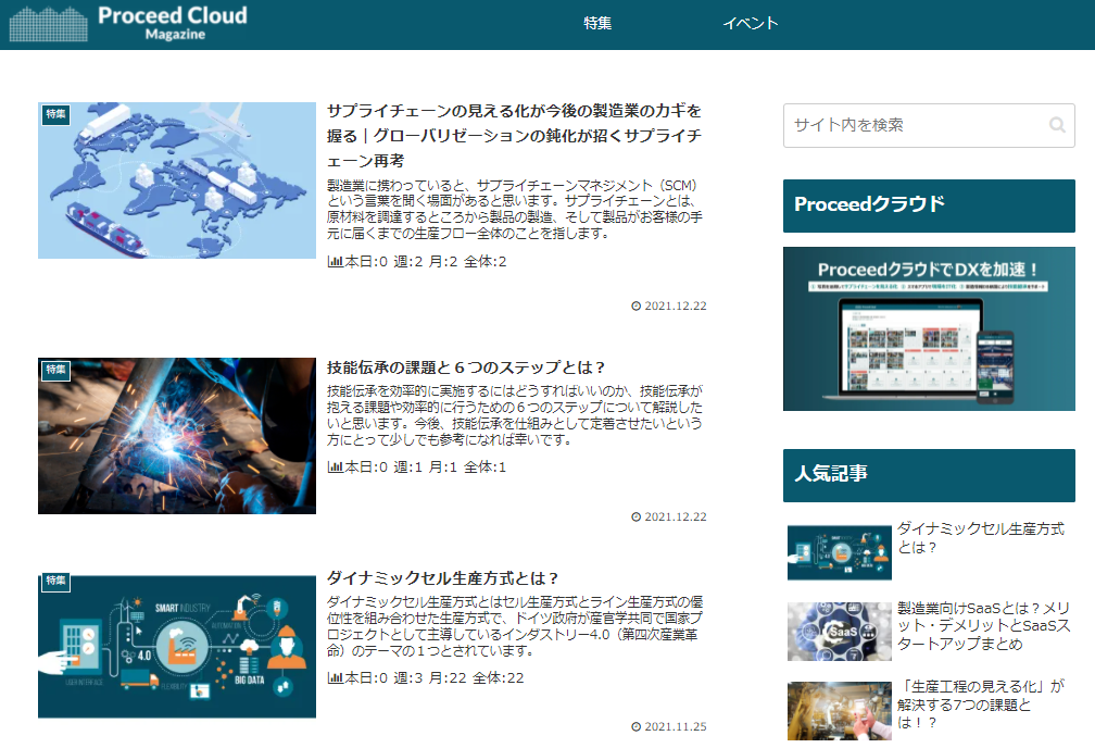 製造現場のデジタル化や業務効率化に関する情報を発信するデジタルメディア「Proceedクラウドマガジン」をリリース