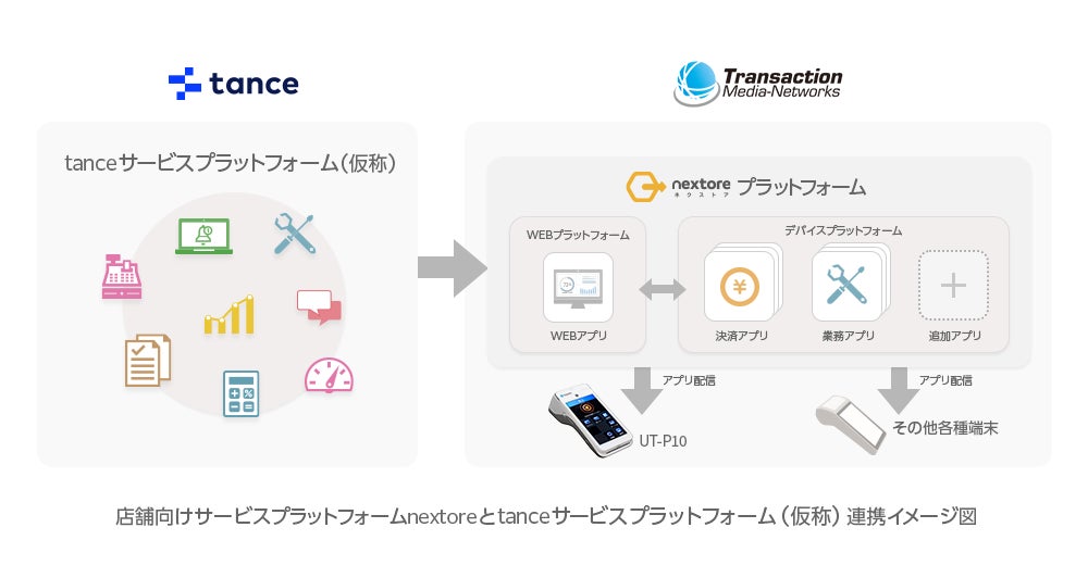 店舗運営事業者向けのプラットフォーム提供やDX(デジタルトランスフォーメーション)推進支援を行うtance株式会社(本社:東京都新宿区、代表取締役:池田 大輔、以下tance)と、情報プロセシング事業およびキャッシュレス決済ゲートウェイ事業を推進する株式会社トランザクション・メディア・ネットワークス(本社:東京都中央区、代表取締役:大高 敦、以下TMN)は、店舗向けサービスプラットフォームを共同で提供することを目的に業務提携をいたしました。