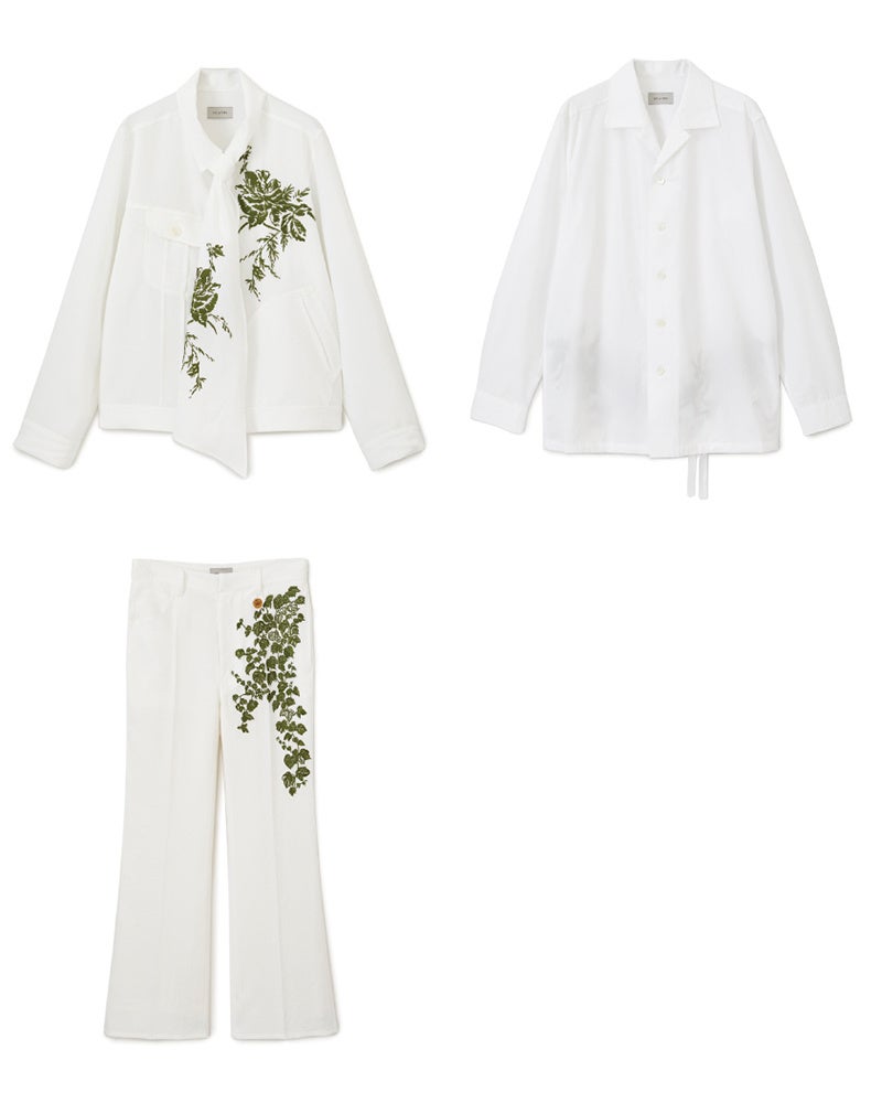 22SS コレクションにあった VEST と SLACKS を UJOH らしいウールギャバジンで表現。またフロントにスリットディテールのシャツは新デザイ ン。