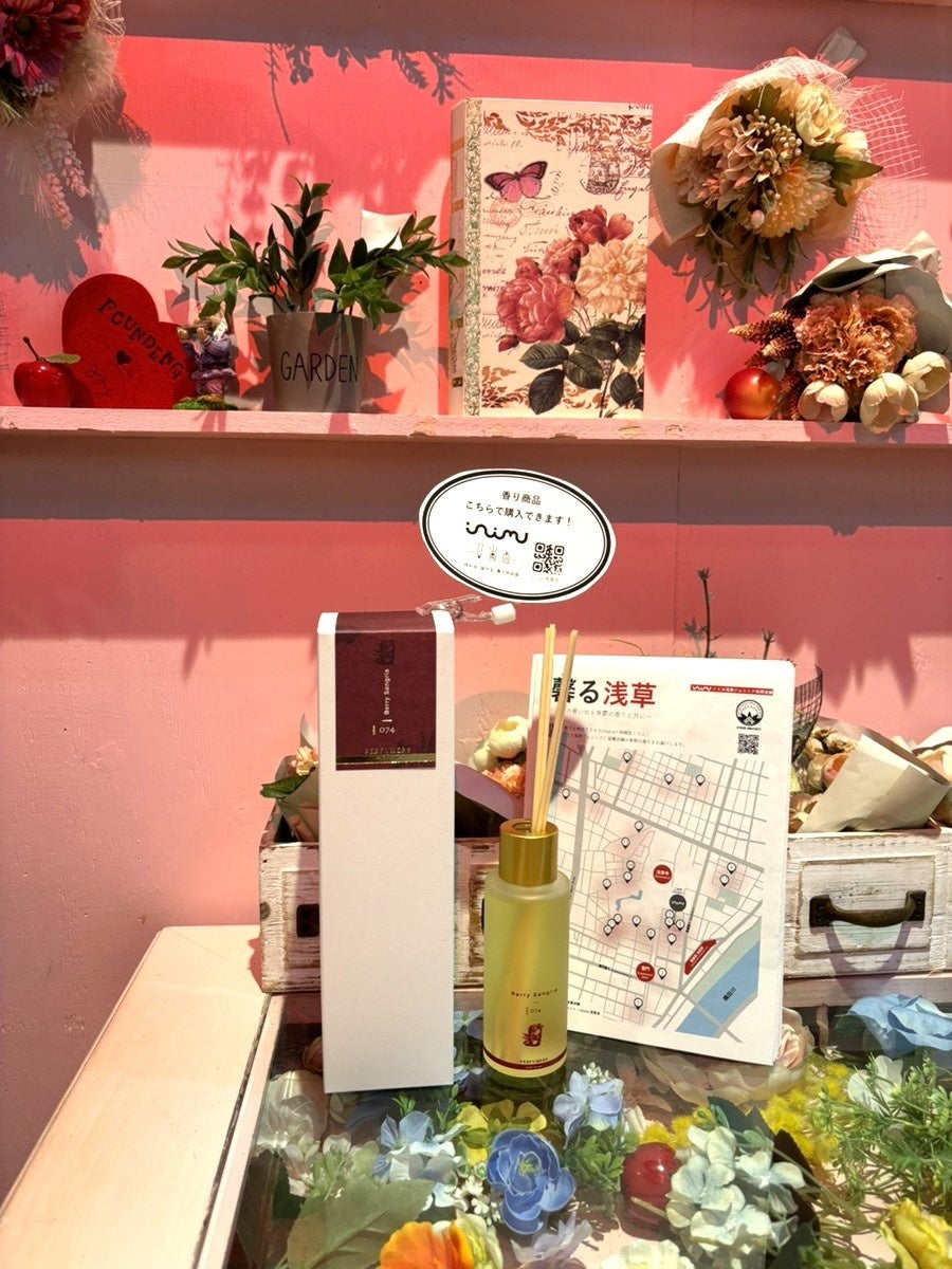日本の調香師が手がける本格的な香りが人気のPERFUMERSシリーズの90daysディフューザーの香りをミス浅草ジェニック加盟店の店内に設置し、浅草での思い出を季節の香りと共に感じられるイベントとなっています。協力店舗には、甘味処の梅園をはじめ、大黒屋天麩羅、レストラン大宮など、浅草を代表する多くの老舗店舗なども参加。季節の香りと共に「馨る浅草プロジェクト」参加店舗が一目で分かる[馨る浅草マップ]も用意されており、四季の良い香りを嗅ぎながら食事や買い物など、浅草の散策が楽しめます。