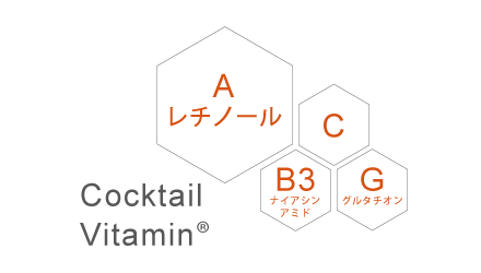 優れた美肌効果を持つ有用成分ABC-G(レチノール*¹、 ナイアシンアミド*²、ビタミンC*³、グルタチオン*²)をカクテル配合。それぞれの効果を補い還元することで、効果をブーストします。
