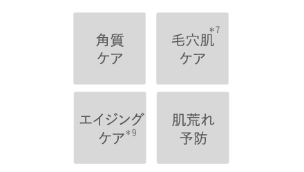 加齢やストレス*⁶でターンオーバーが乱れた角質を整え、健やかなハリのある肌に導きます。