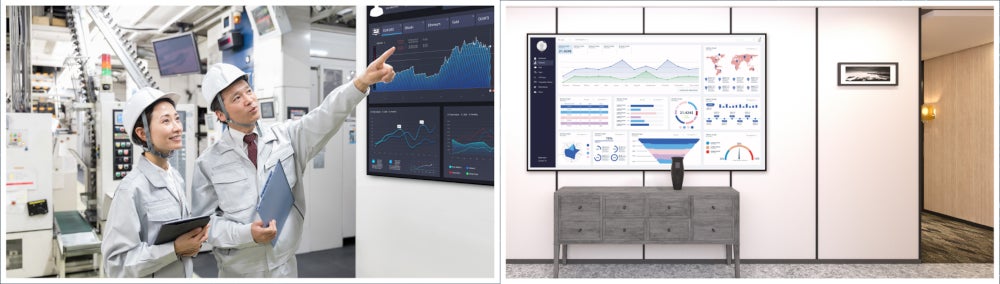 製造工場などの現場において、従来のホワイトボードや掲示板に替わり、情報共有、共働、共感を進めるツールとして活用されることが期待されます。