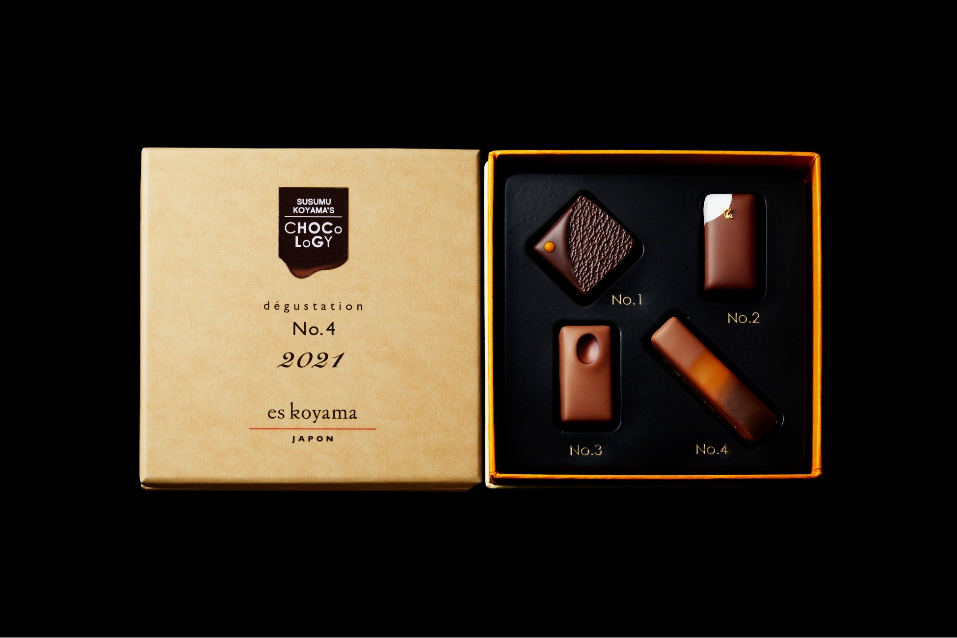 「SUSUMU KOYAMA'S CHOCOLOGY 2021」の4種類のショコラは、4つの素材と4人のモノづくり人とのセッションによって生まれました。4人の名をショコラに刻んだのは、「敬意」と「感謝」の気持ち、そして何より「彼らとでなければ絶対に生み出せなかった」という強い想いと「彼らから受け取ったバトンをお客様一人一人に確実に届けたい」という想いの表れです。