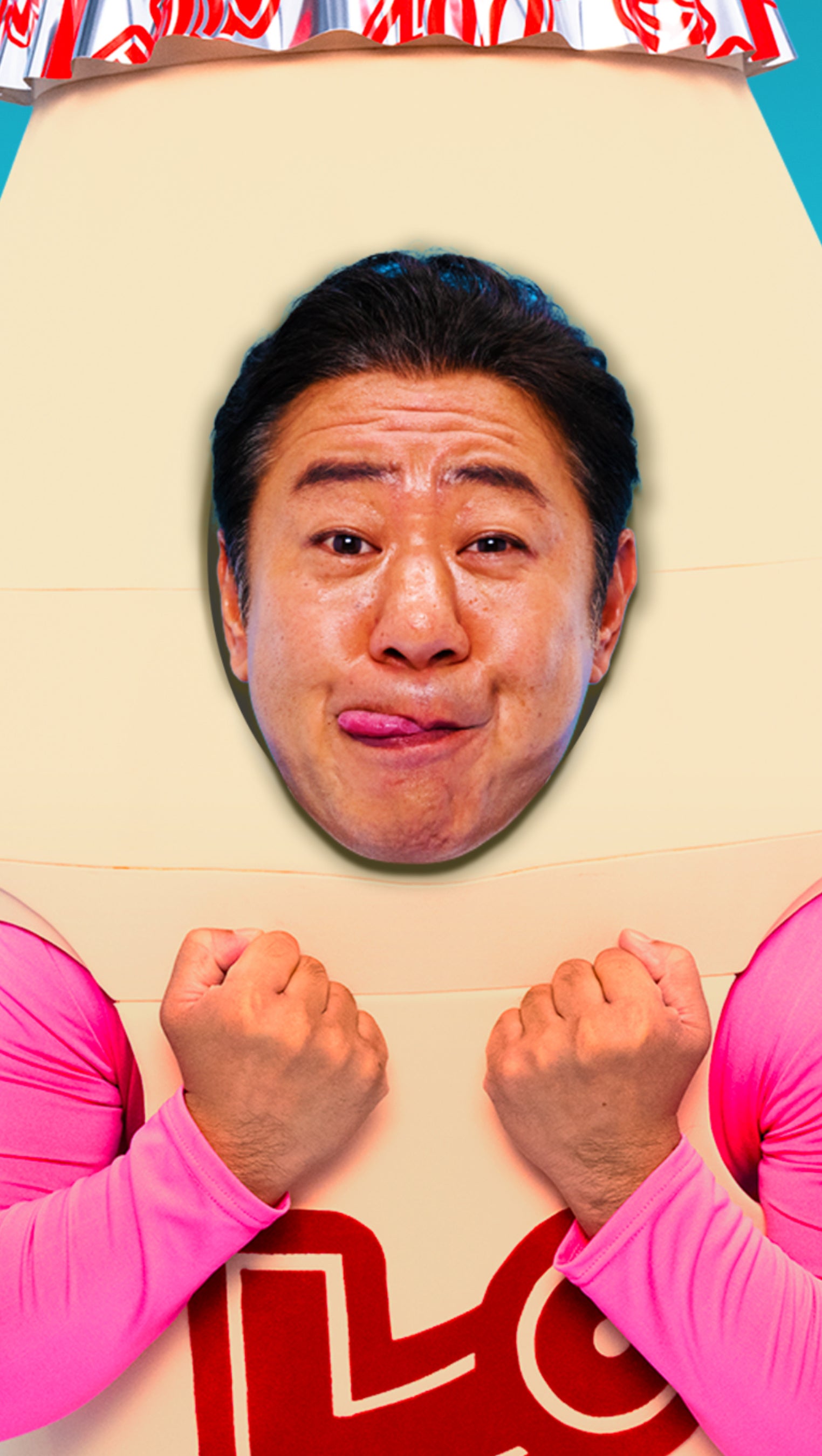 ピルクルの着ぐるみを着たまさのりさんが、誰もが知るゲーム「にらめっこしましょ♪」の歌のリズムに合わせて「ピルクルしましょ・この安さはほぼ・タっダっじゃん!」と歌い、変顔を見せてきます。同時にユーザーはカメラで自身の変顔を写し、AI判定でまさのりさんの変顔得点よりも高い得点を取ることができれば勝利です。寄り目、ギョロ目、鼻下を伸ばした顔などの定番変顔から、ホスト時代のまさのりさんが蘇ったかのようなホスト風のナルシスト顔、音楽室で一度は見たことのある有名音楽家風の流し目、まるで少女漫画なデカ目メイクといった特殊な変顔、CG特殊加工変顔まで、変顔の数は100種類。変顔はランダムで登場します。合間に入る、渡辺隆さんの鋭いツッコミも必見です。