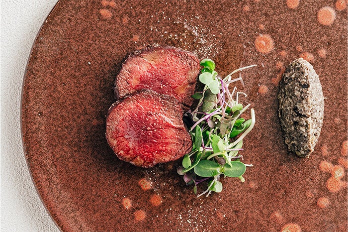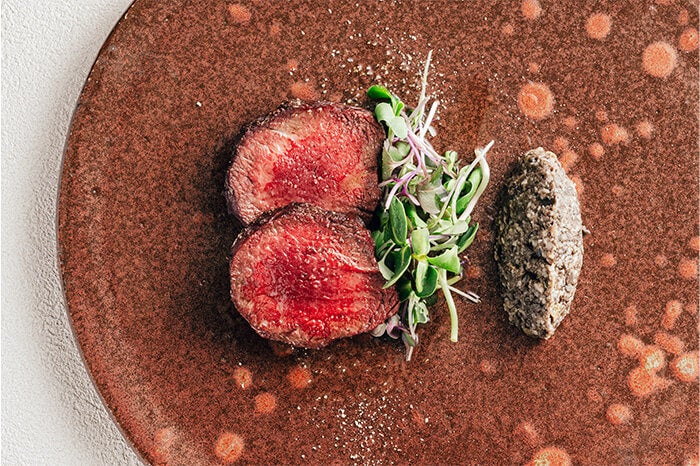 - 【スペシャルコース メイン】鹿肉のステーキ ~マッシュルームのタプナード~