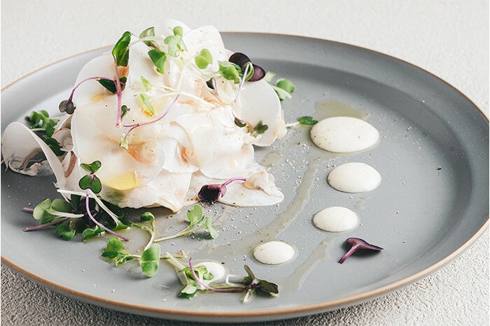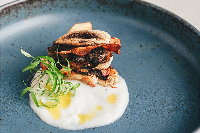 ※ヴィーガンコースは、進化を経た「スモークマッシュルームとビーツのタルタル2.0」です。