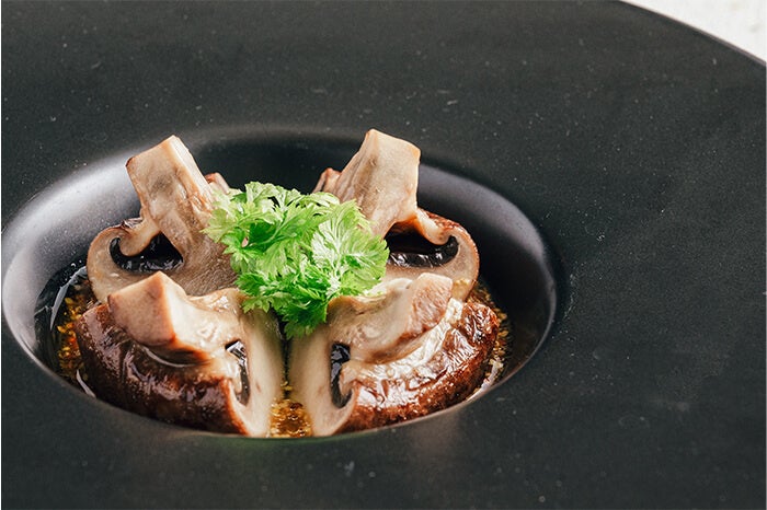 「マッシュルーム料理専門店」にふさわしく、マッシュルームを前菜からデザートに至るまで主役に据えて、さまざまな調理法でマッシュルームの奥深い味わいを提案しています。