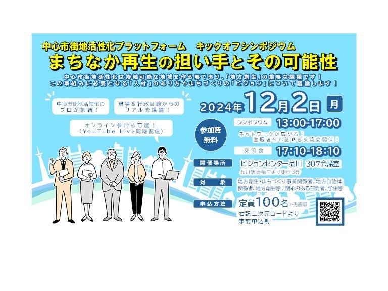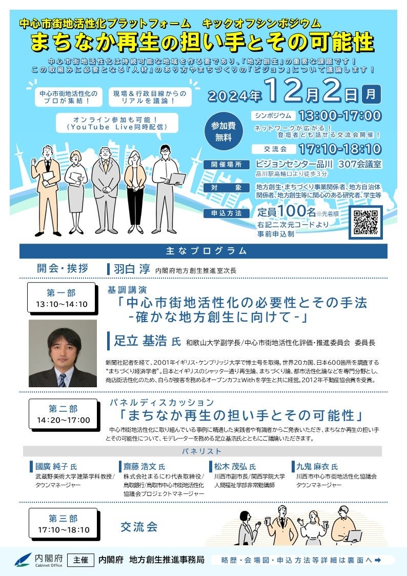 <内閣府 地方創生推進事務局 主催>中心市街地活性化プラットフォーム キックオフシンポジウム 「まちなか再生の担い手とその可能性」参加者募集【12月2日(月)開催】