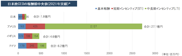 ~2021年日米欧CEO報酬調査の結果公表(報酬実績、構成比、業績評価指標の比較)~