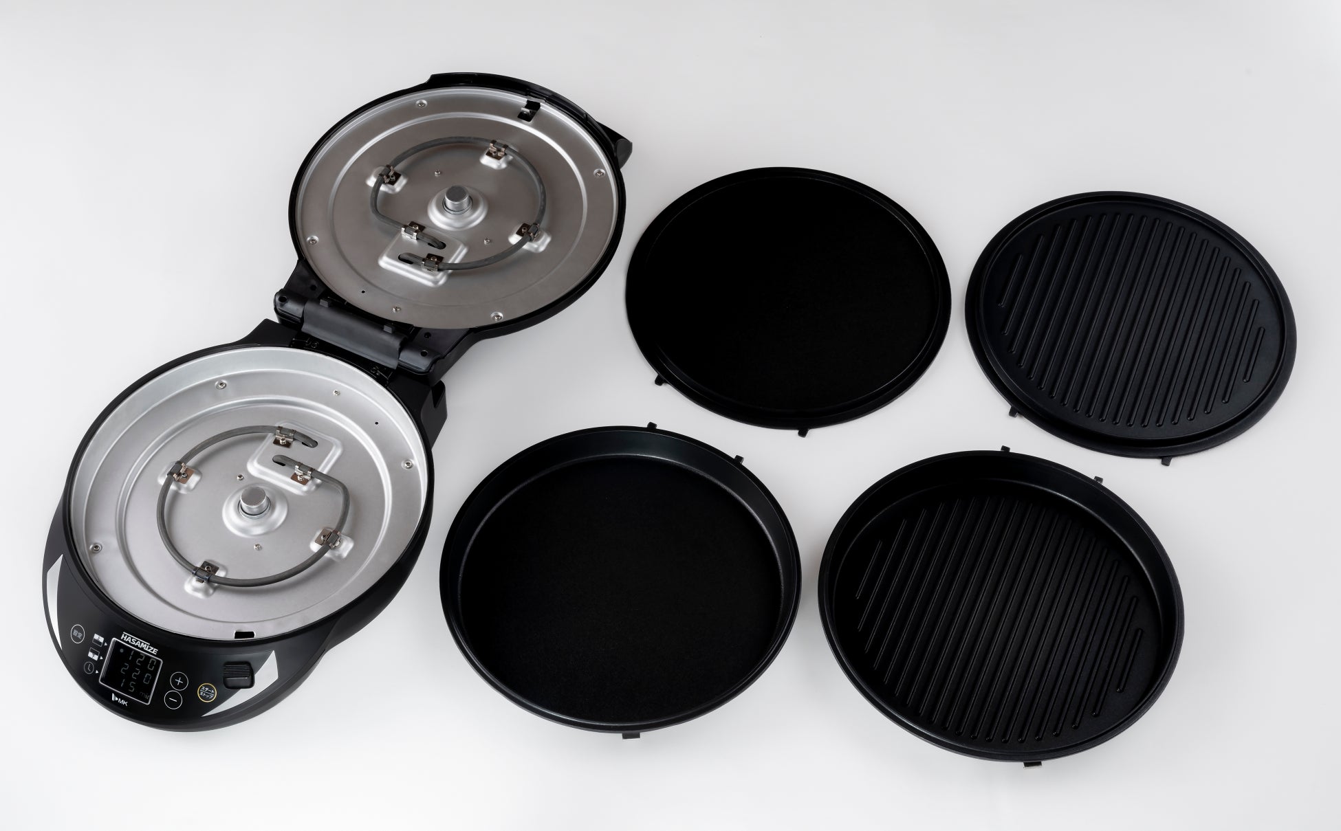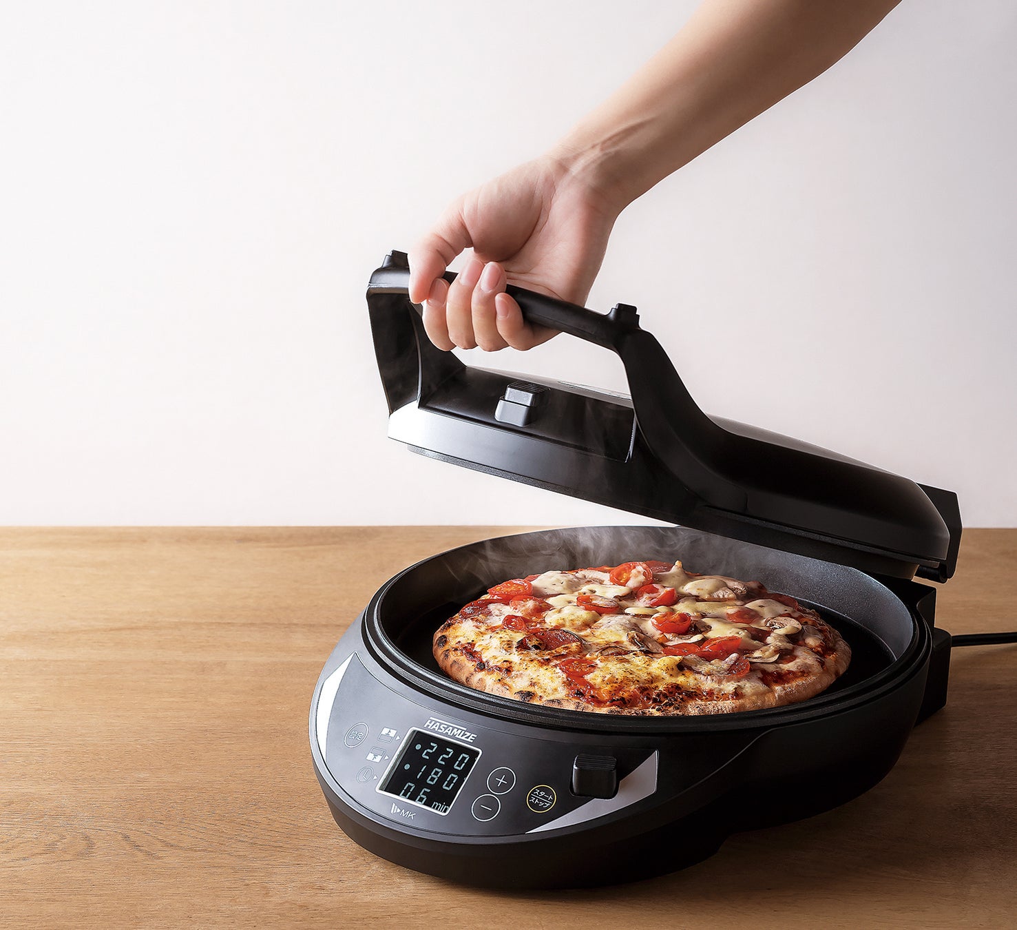 今回発売する両面焼きホットプレート「HASAMIZE(ハサマイズ)」は、上下2枚のプレートを使ってはさんでも開いても加熱調理ができる製品です。ピザやお好み焼き、ケーキなど、これ一台で料理の幅がさらに広がります。