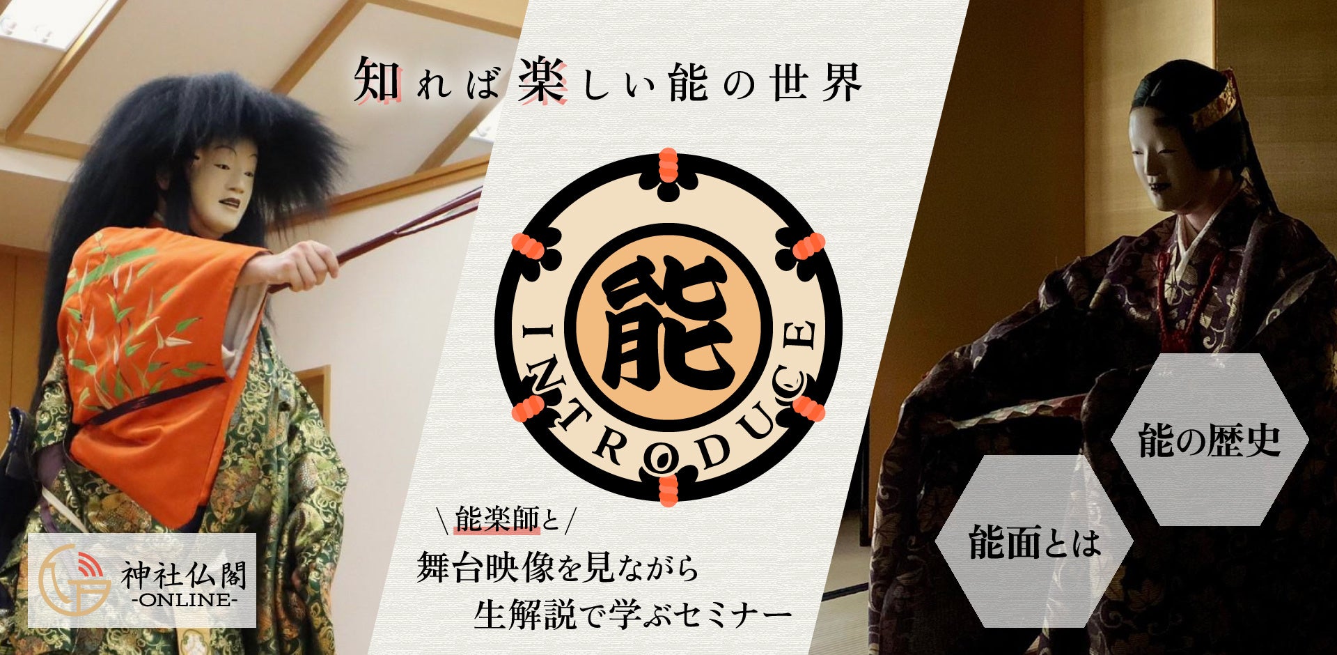 Twitter「みなさんは能楽師に聞いてみたいことは何ですか?」アンケート結果のもと作られた、踊りの内容、能面、能の歴史、すべてを1時間15分学べるオンライン講座です。