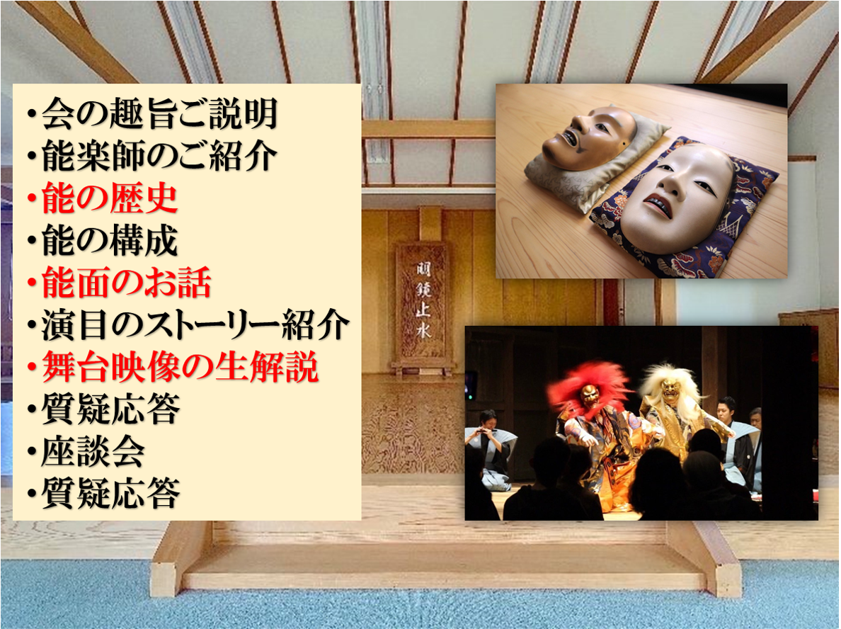 その他にも能面の不思議や、歴史についてなど、これ一本でお能がまるわかり!そんな講座となっております。