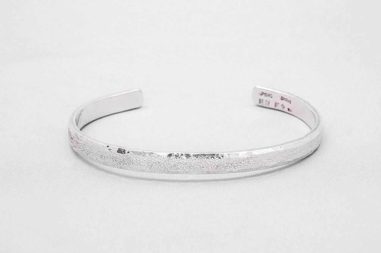 「銀師(しろがねし)」と呼ばれる職人の技術で、江戸時代から続く技法を駆使して一打一打、丁寧に打ち込みます。この打ち込みの技術を継承する者は日本に10人もいないと言われる、とても貴重な技術です。