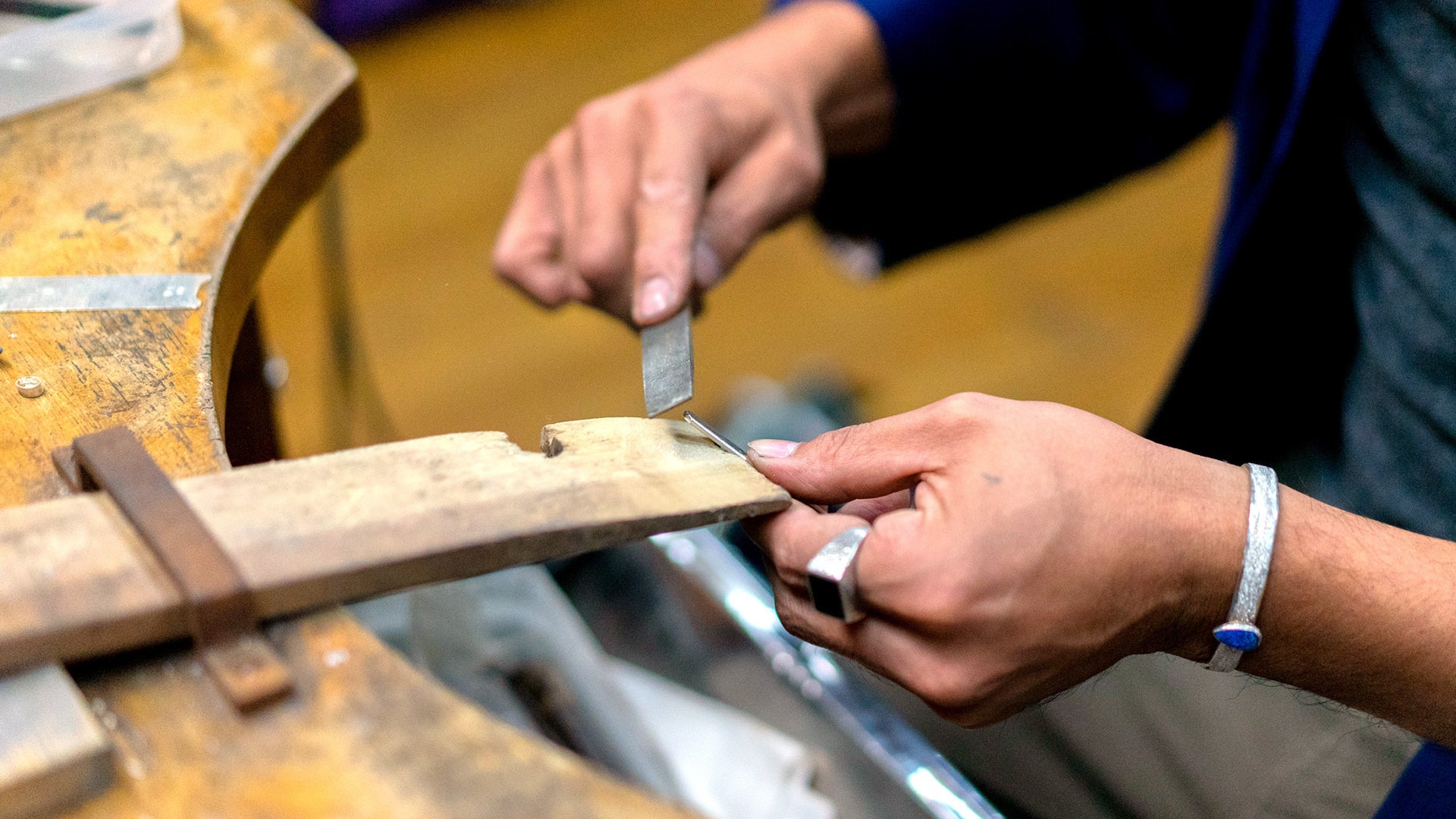 「メテオシルバー」は江戸時代から12代受け継がれた知識や技術を持つ銀師(しろがねし)上川宗光の腕により、繊細なジュエリーをひとつひとつ使いやすい強度に仕上げております。
