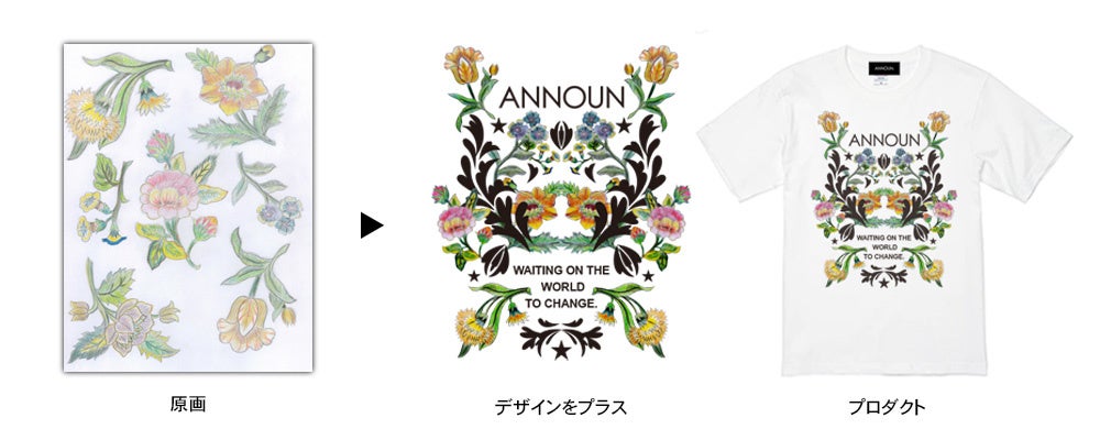 作品に、未知の可能性を感じ、インスピレーションを受け、原画に ANNOUN のデザインのフィルターを通して、コラボレーションした製品を発表、販売しております。