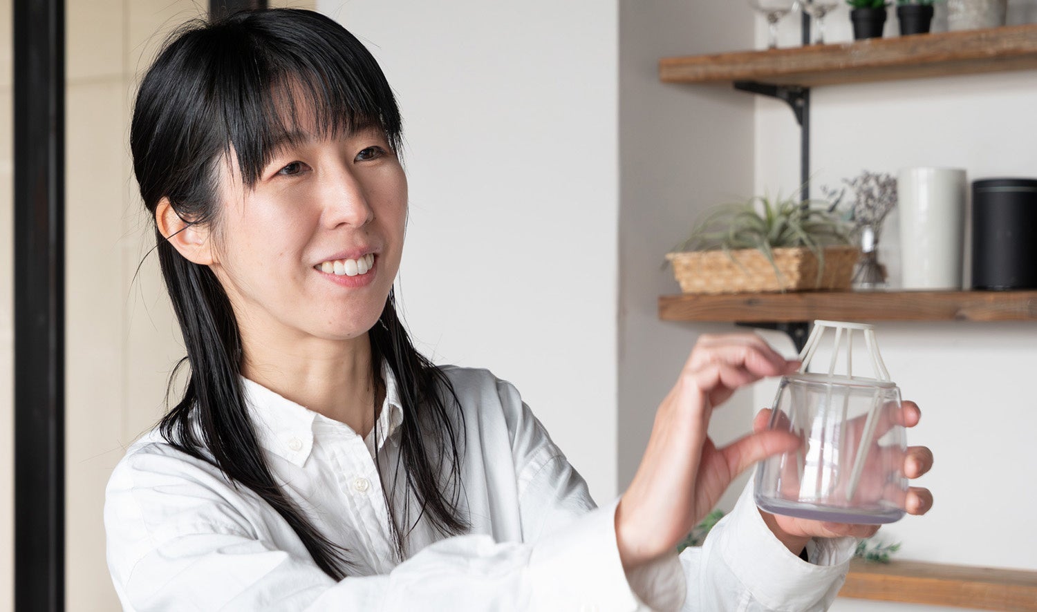 夫から花束をもらったことがない私は、「私も花束をもらってみたい」とお願い。結婚記念日に大量の花束をもらうが・・・。器がなかった。その時期は猛暑でお部屋は30℃以上に。初めてもらったお花なのでなるべく長持ちさせたいと思い、日中エアコンをつけて出社した日もあった。でも電気代がもったいない。どうにかならないかと思ったのがきっかけで、ブランドの立ち上げと商品開発をスタートしました。