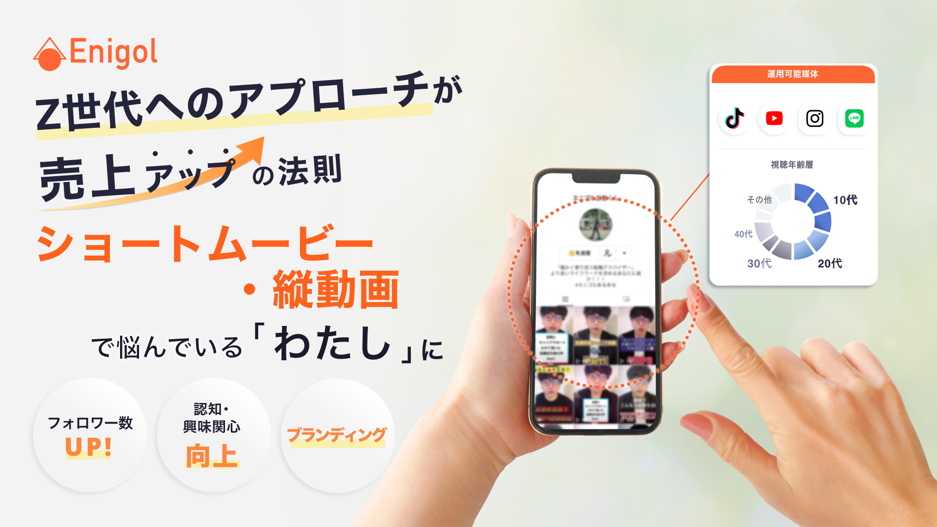 株式会社Enigol(読み方:エニゴル、本社:東京都渋谷区、代表取締役:柳沢智紀、以下「Enigol」)は、Z世代と呼ばれる若者からのリーチを獲得するために必要不可欠なショートムービー・縦動画の制作サービスを4月14日(金)に提供開始致しました。
