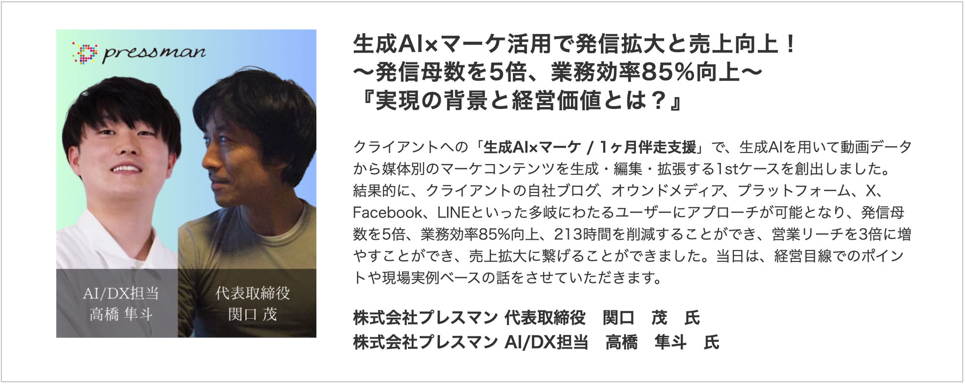 20:05 〜 20:45:「生成AI×マーケティング事例」【株式会社プレスマン】