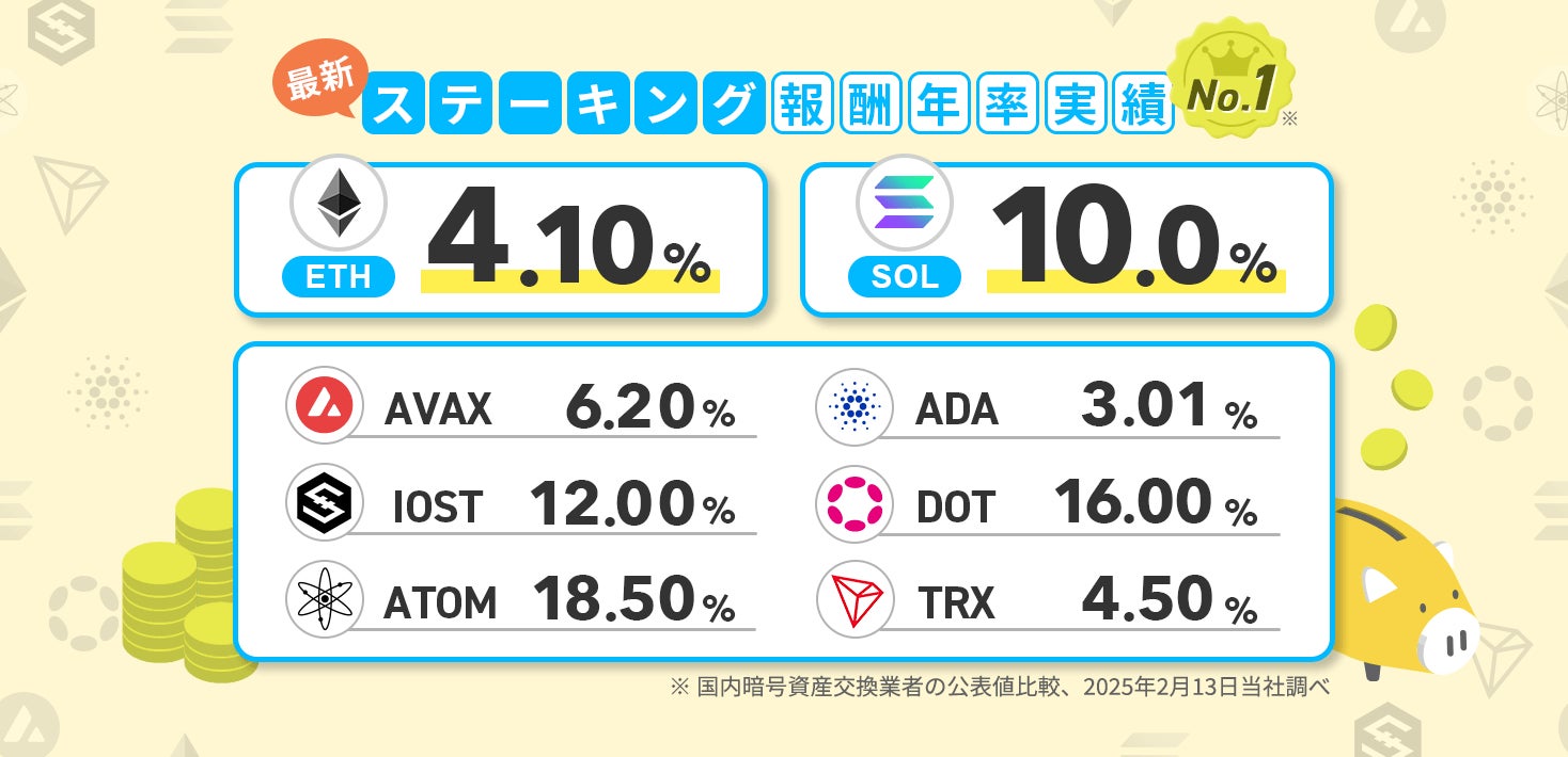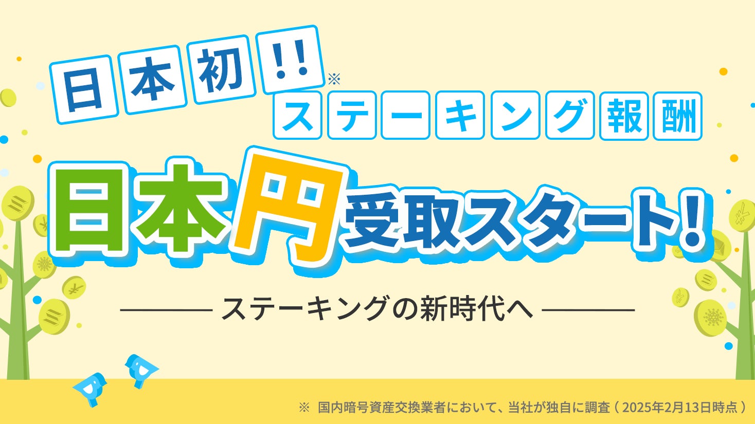 SBIグループで暗号資産交換業を運営する株式会社ビットポイントジャパン(本社:東京都港区虎ノ門四丁目2番3号、代表取締役:田代 卓、以下「当社」)は、2025年2月13日より、日本初※1のステーキング報酬の日本円受取サービスを開始したことをお知らせいたします。