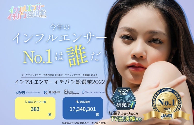 【インフルエンサーイチバン総選挙2022】インフルエンサーエントリー数383名、応援投票数1730万票を突破!
