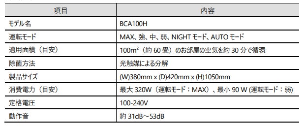 本製品は高い除菌・脱臭効果をもつAPSジャパン株式会社製の光触媒フィルター「ALMION」(*²)を搭載し、大型のクロスファンにより装置内に取り込んだ空気を大風量で循環することで、広範囲の空気中の細菌やウイルスなどを二酸化炭素と水に分解するため、公共施設や病院の待合室などの人が集まる場所での安心な環境づくりに適しています。