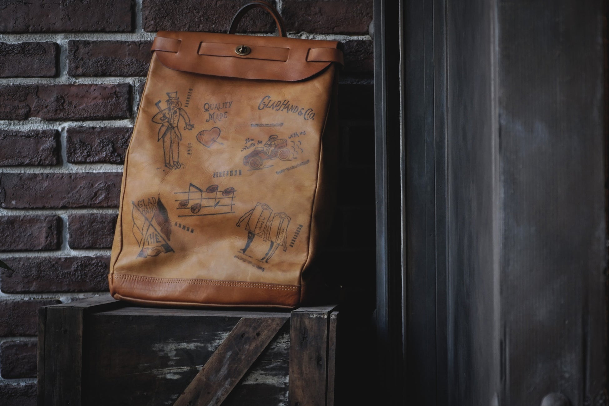 LEATHER VOYAGE 2WAY RUCKSACK "GLAD POSTALS"
