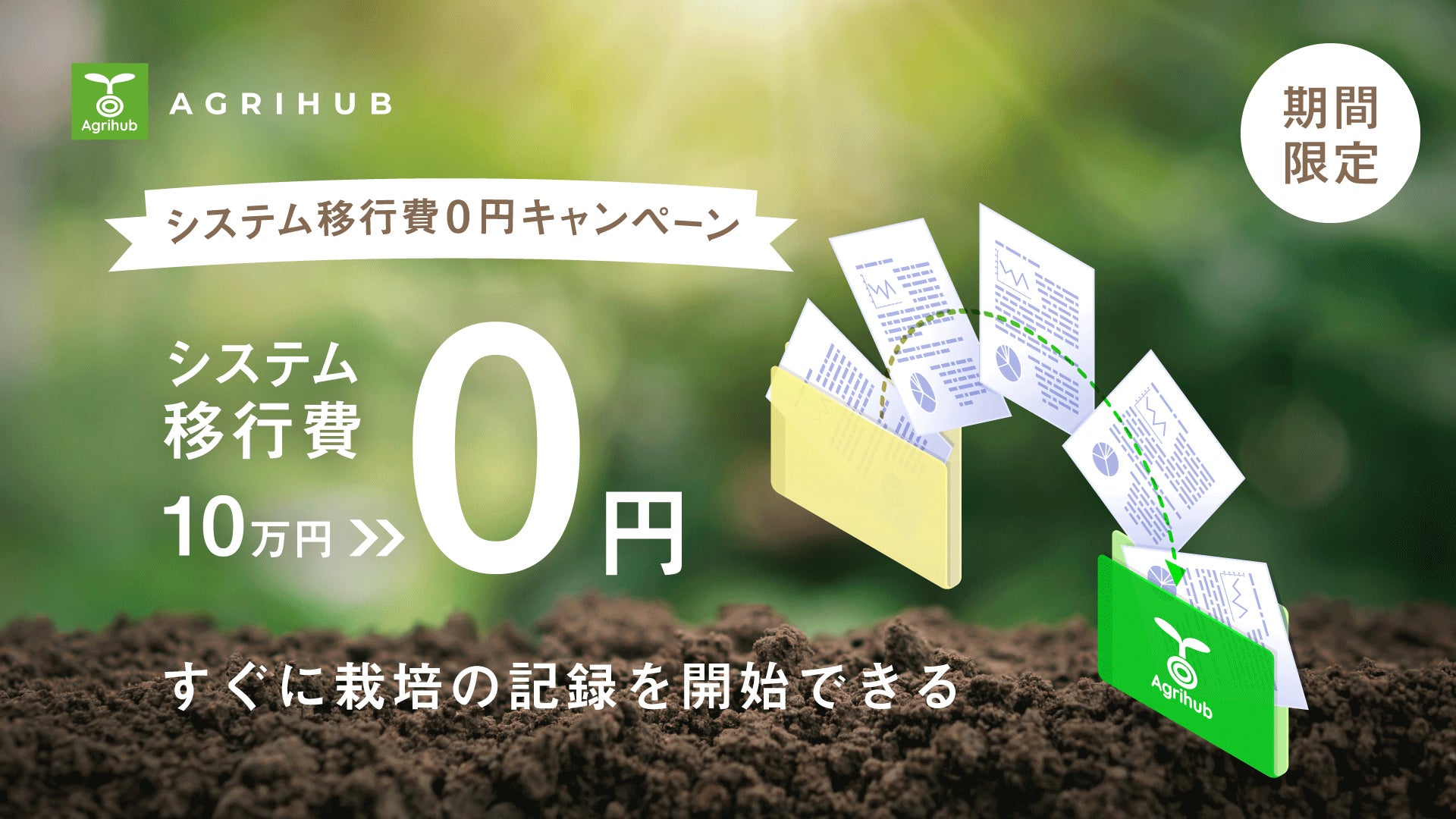 他社システムから「アグリハブ」に乗り換えをする農家さんを対象に、圃場データのデータ移行にかかる費用(10万円)を無料で対応する「システム移行費0円キャンペーン」を開始します。
