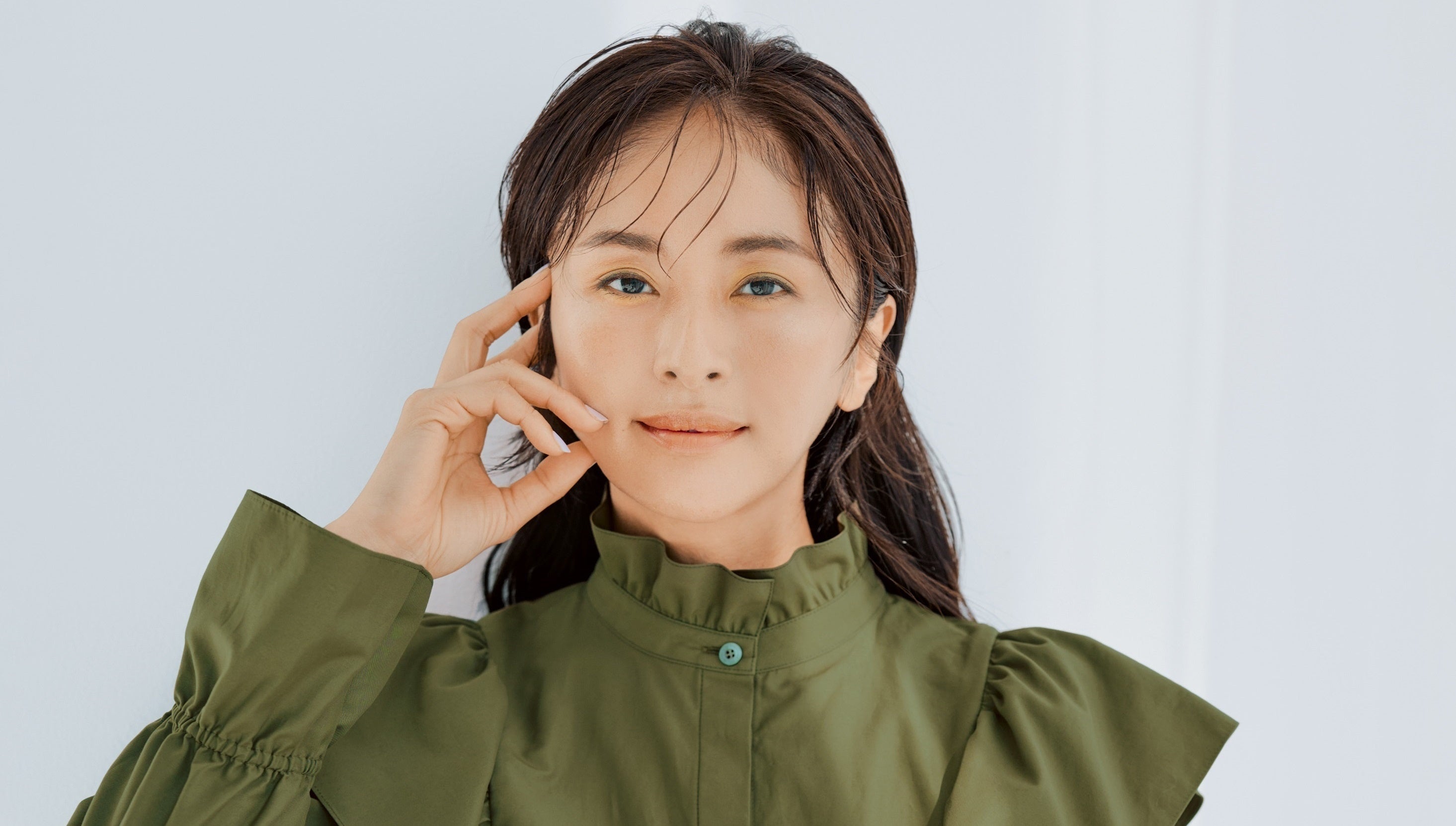 甘辛のコントラストをバランス良く詰め込みました。内面の可愛らしさを引き出してくれるフリルに対して、色は穏やかで中性的なオリーブグリーンを選んでいます。