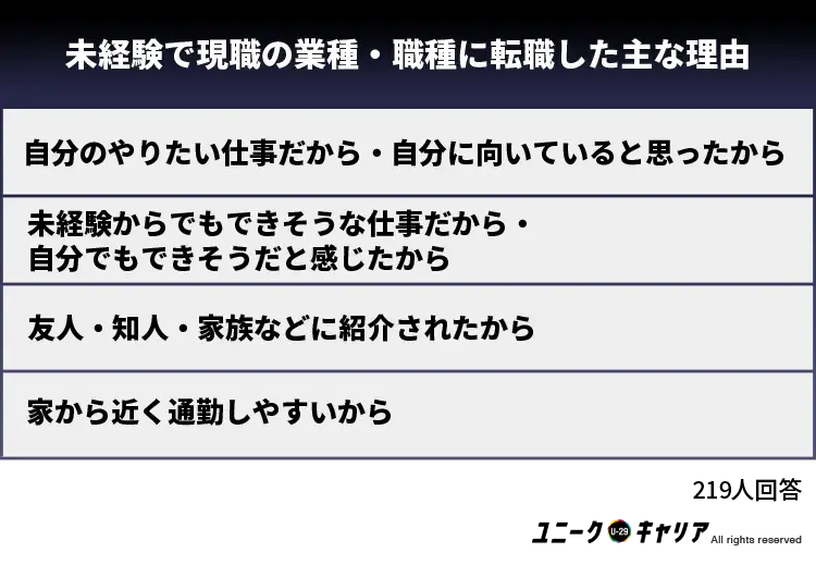 未経験で現職の業種・職種に転職した主な理由「自分のやりたい仕事だから」