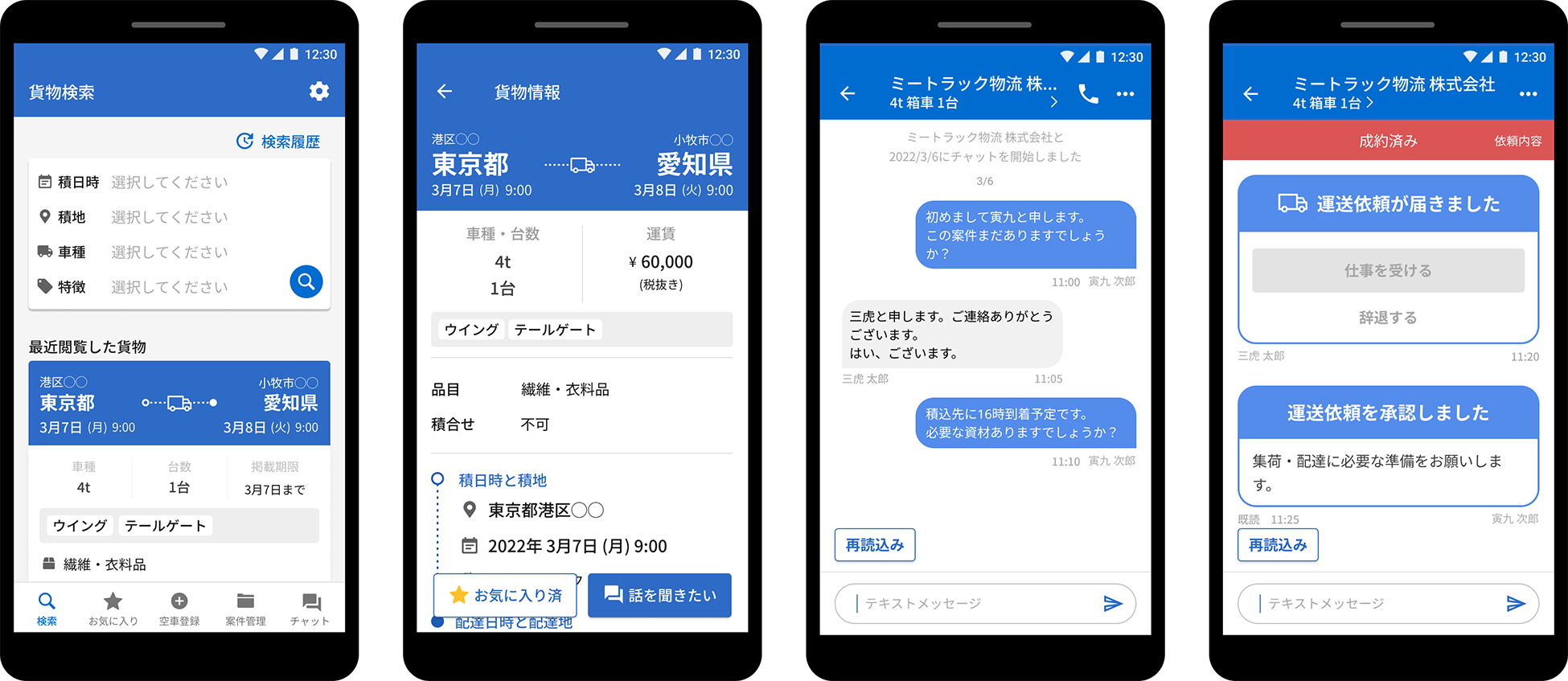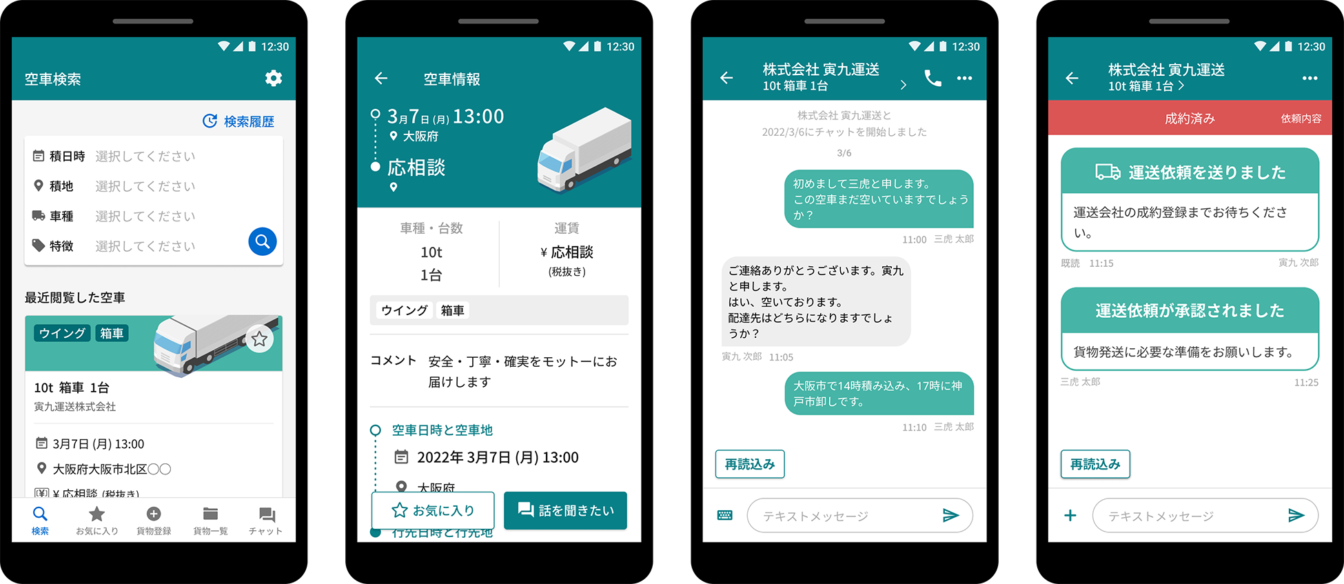 アプリ内で「運送依頼」と「依頼の承諾」まででき、交渉経過の証跡を残すことが可能