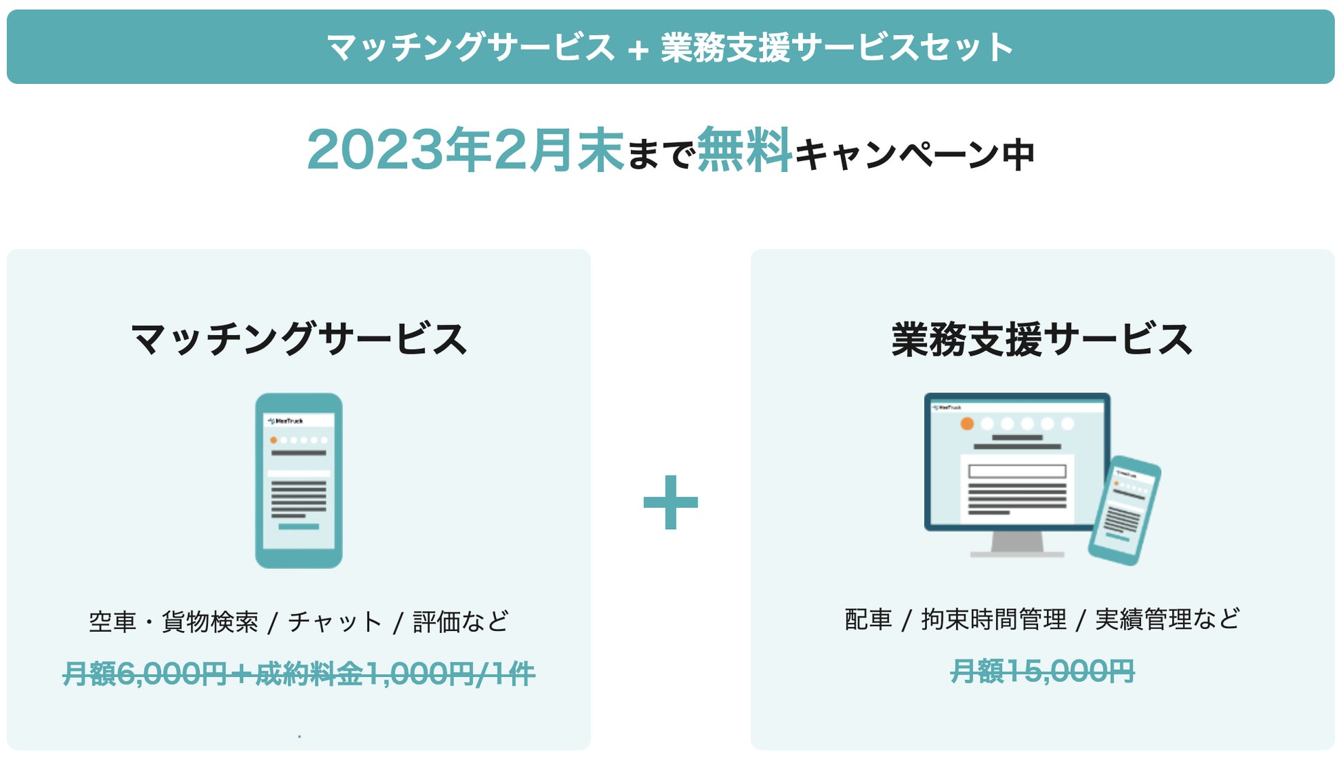 2023年2月末日までの間、無料でマッチングサービスをご利用いただくことができます(※運送に係る運賃・料金は、運送会社にお支払いいただきます)。