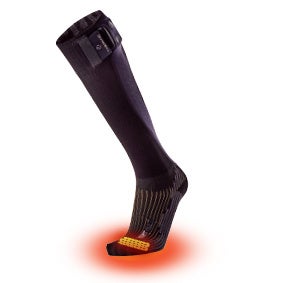 厳しい寒さから確実に足を保護するヒーティング機能付きソックス。外側にバッテリーを簡単に装着でき、最も冷えに弱い前足部を長寿命設計の発熱体で加熱します。足に完全にフィットする左右非対称のアナトミカルデザインを採用し、ふくらはぎをサポートする伸縮性のあるカフによって、スキーやスノーボードに最適なモデルとなっています。