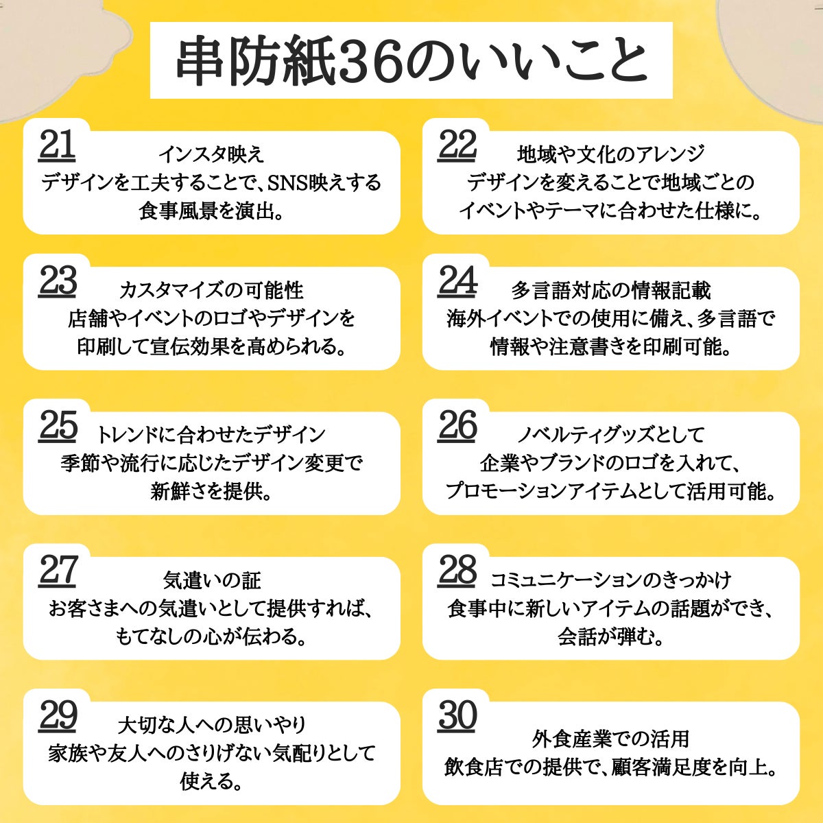 食事をする時間をより豊かで楽しいものにするため、ぜひ「串防紙36」をご活用ください。