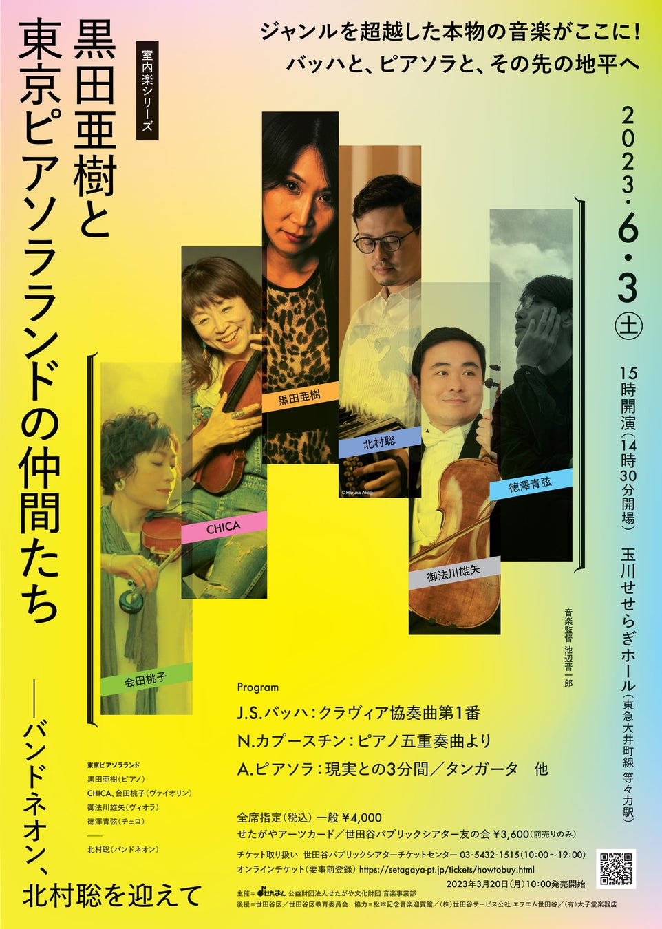 〈室内楽シリーズ〉黒田亜樹と東京ピアソラランドの仲間たち ―バンドネオン、北村聡を迎えて