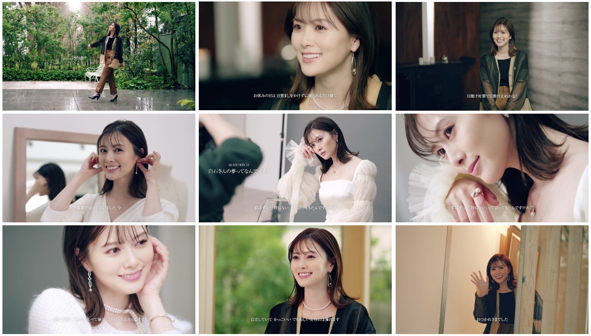 スペシャルサイト「My Pearls, My Style」において今年2月に公開をスタートした企画「人生の節目に、ミキモトのパールがある。」では、各界で活躍するスターたちが登場。さまざまな人生の、さまざまなスタイルに寄り添ってきたミキモトの魅力をより深くお届けしています。今回は、「白石麻衣さんのある一日に密着」というテーマで撮影した動画及びビジュアルを公開。密着する中で白石さんにインタビューを実施し、人生の転機や印象に残っている仕事のエピソード、憧れの女性像、好きなファッションやジュエリーのお話など、お仕事やプライベートにまつわる20の質問に答えていただきました。