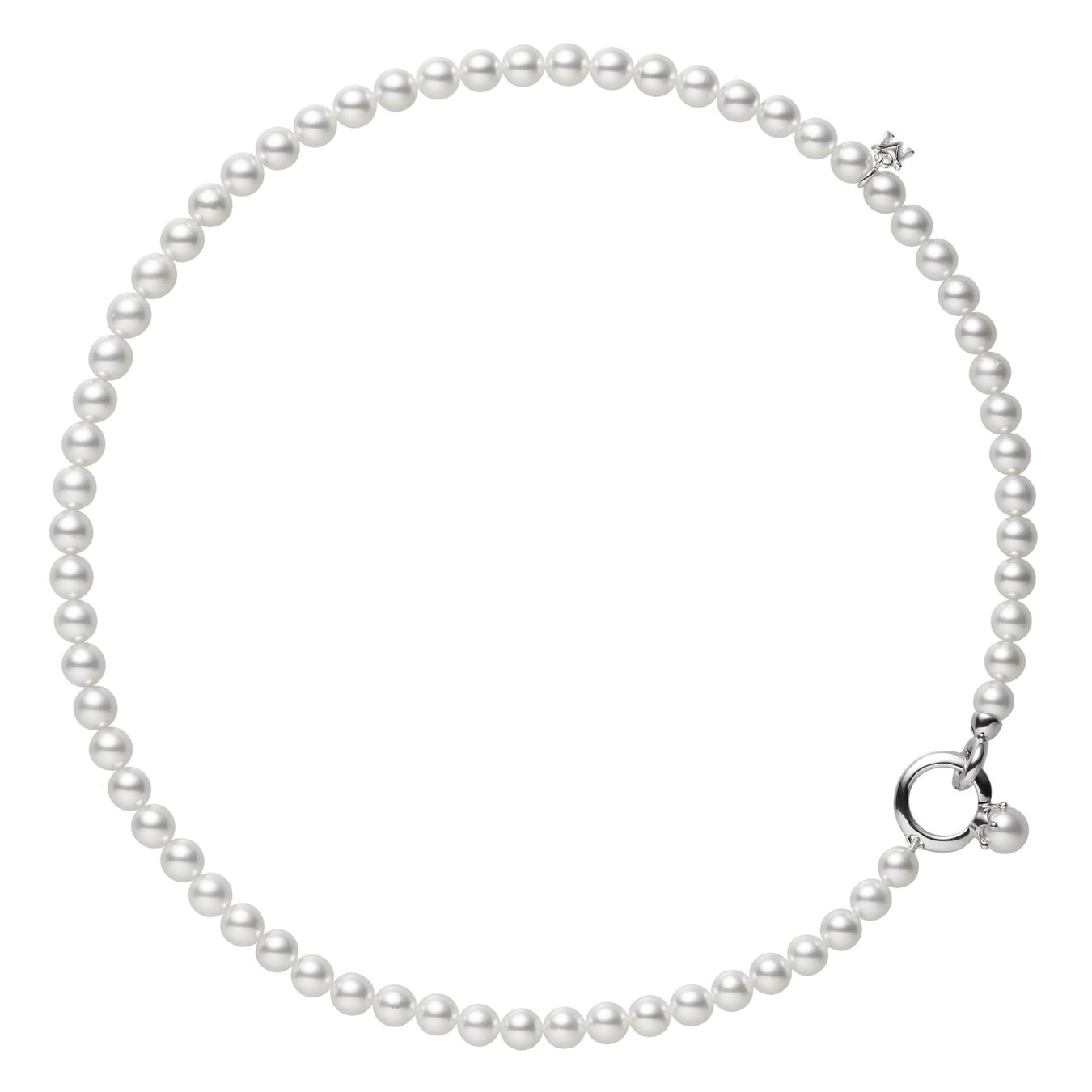 MIKIMOTOのアイコニックなパールリングをモチーフにしたネックレスが登場。留金の位置を変えることで自由にアレンジをお楽しみいただけます。