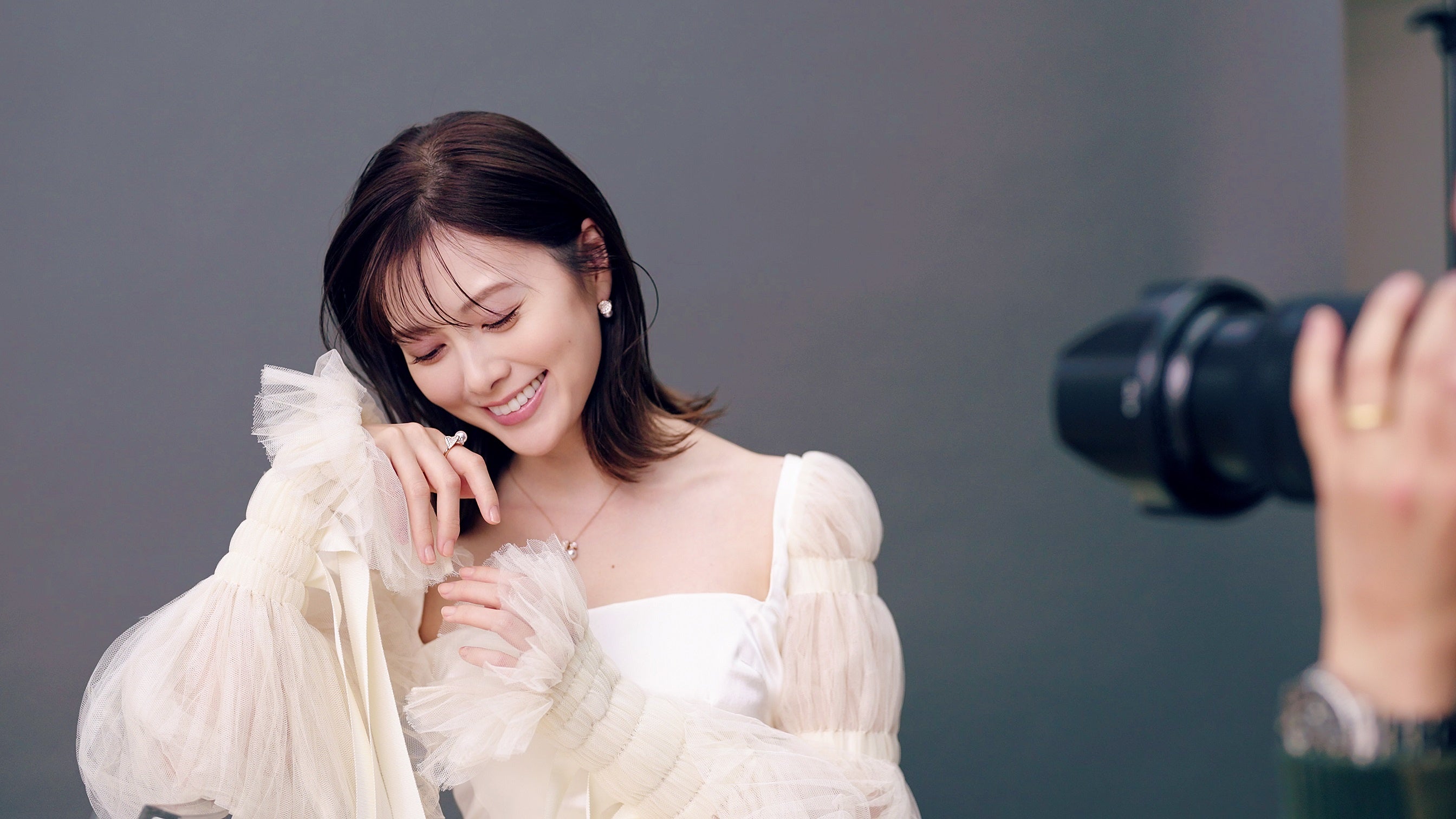 白石麻衣の一日に密着。パールを纏い、透き通る肌で魅了!優しい笑顔にクールな表情…裏側を追った動画公開。-白石麻衣に20の質問-30歳に向けて欲しいものとは?人生の転機も語る