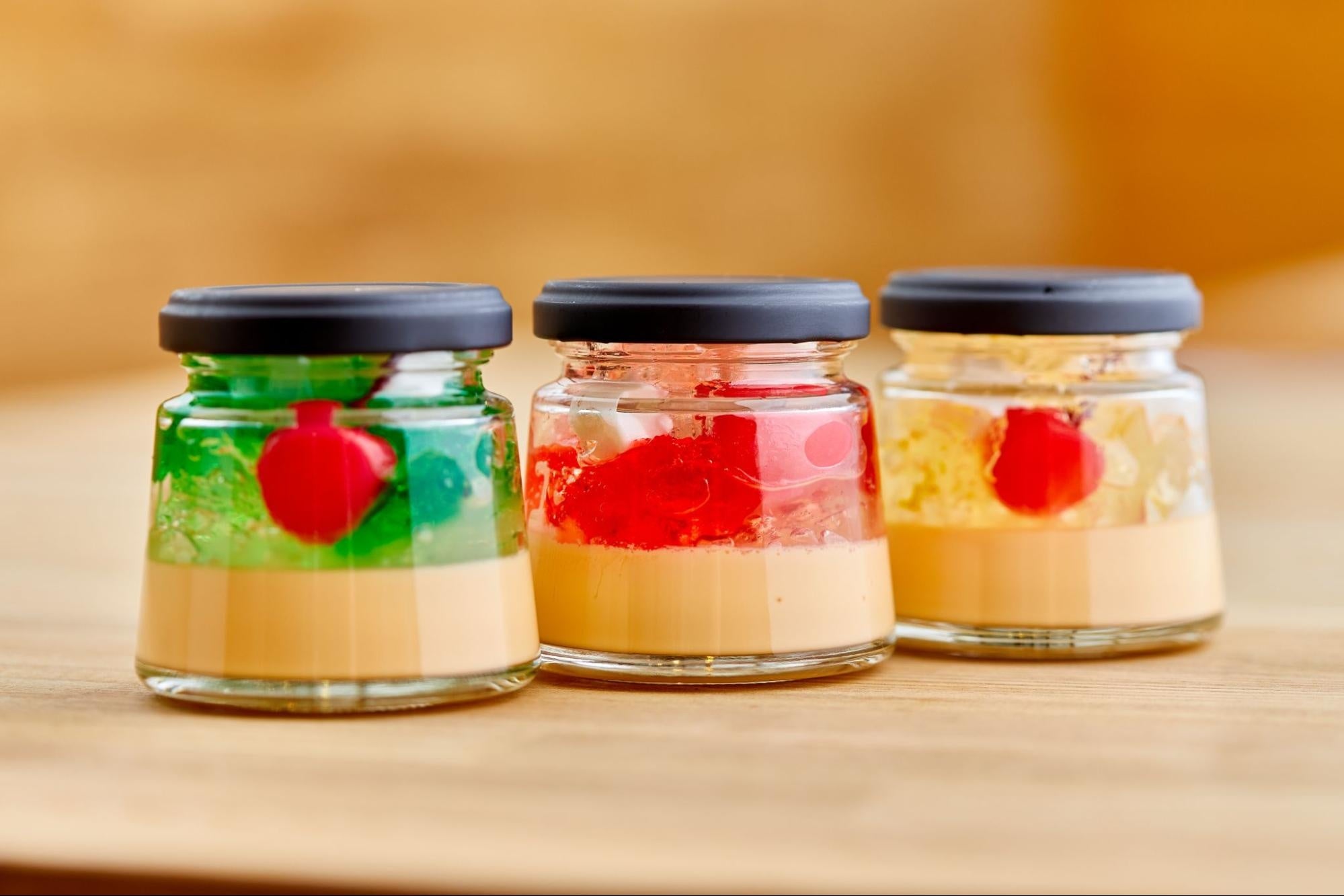 難波メロンsodaプリン、難波いちごsodaプリン、難波ゆず蜂蜜sodaプリン