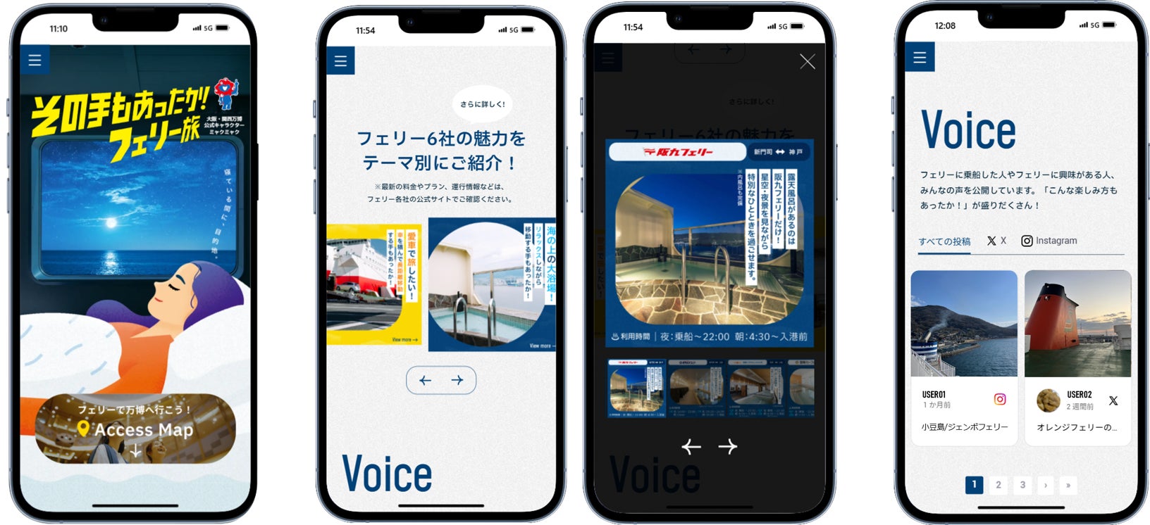 昨年、フェリー6社の魅力を再発見してもらうことを目的に開設した「その手もあったか!フェリー旅」サイト。今年は各船の特徴などさらに詳細な情報と、実際にフェリーに乗船した一般の方々によるSNS投稿(※3)を紹介する機能を加えました。また、前述の「FERRY BOOK」も特設サイトから閲覧可能です。