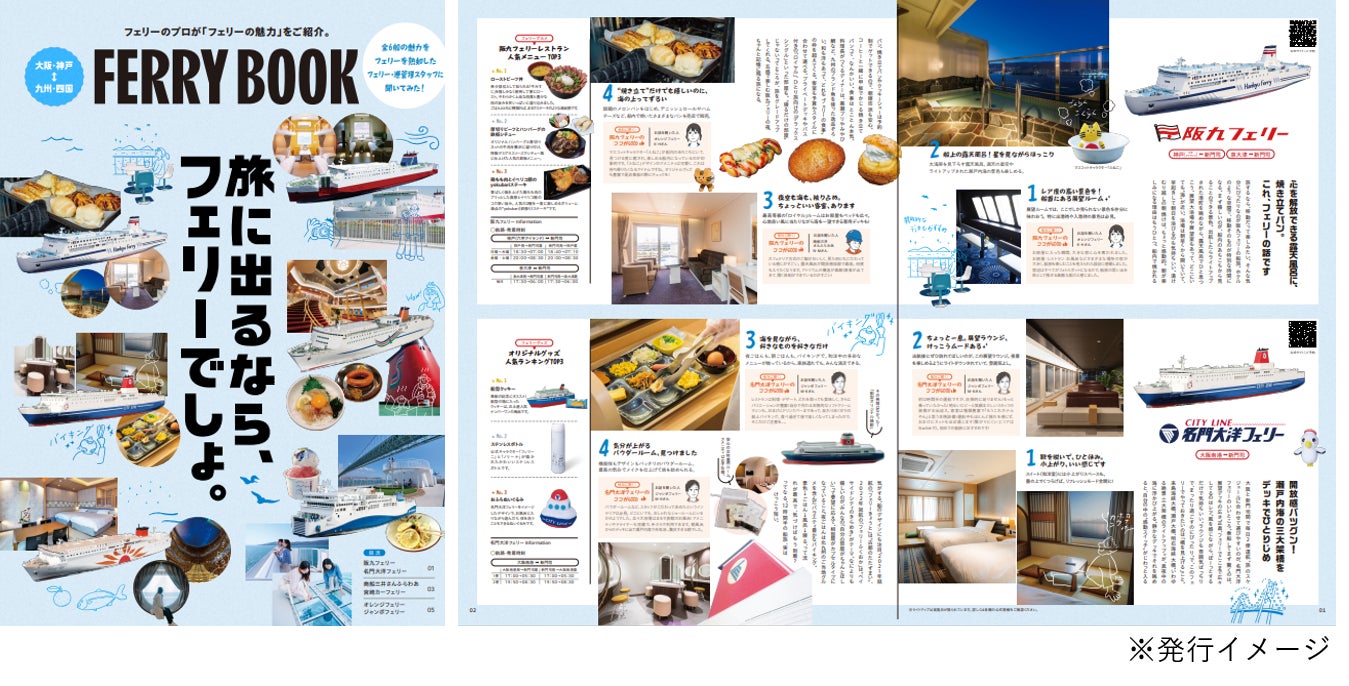 フェリー6社を紹介するガイドブック「FERRY BOOK」を発行します。各船の特徴やおすすめポイントの記載はもちろん、注目すべきは6船のフェリー会社スタッフがお互いのフェリーの魅力を紹介していること。フェリーのプロならではの着眼点をぜひお楽しみに。