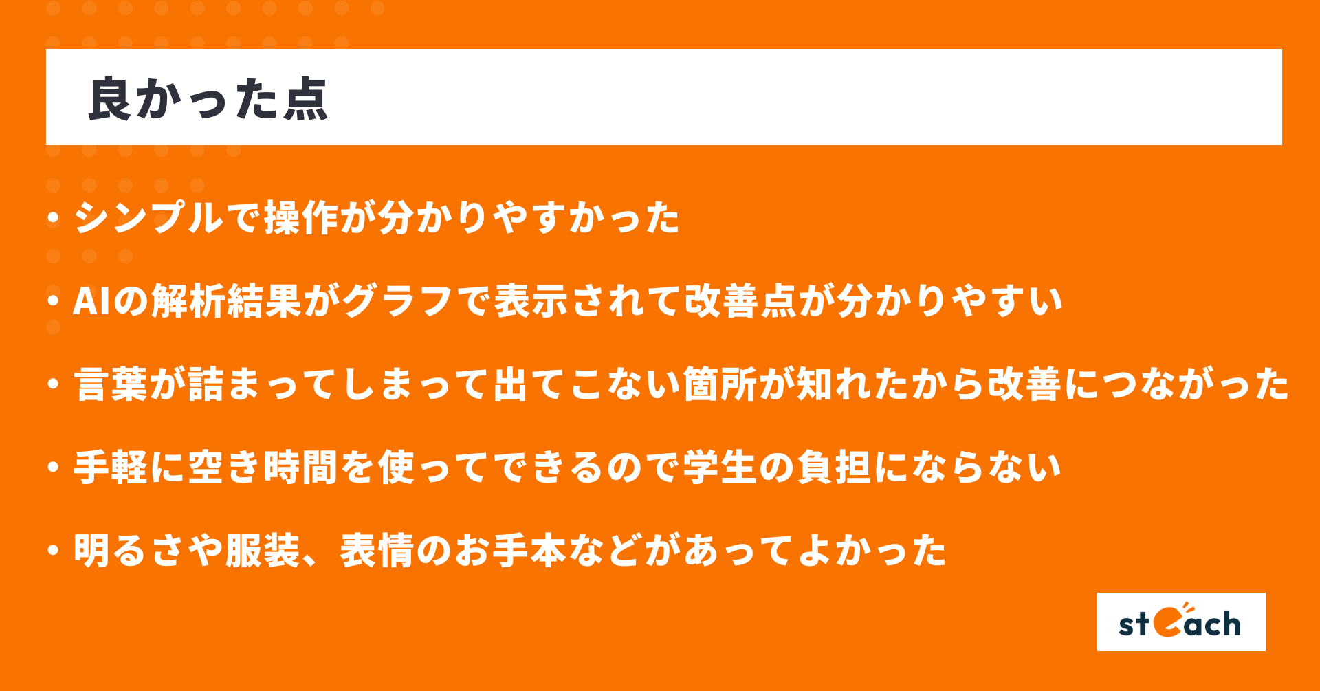 ・言葉が詰まってしまって出てこない箇所が知れたから改善につながった