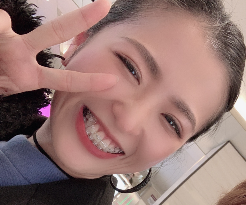 矯正をスタートする前に抜歯を経験し、矯正スタートからは歯の動く痛みに戸惑いました。今はカラーゴムを付けて気分を上げたり、矯正を楽しんでいます。そして歯並びが綺麗になっていくのが楽しみです。